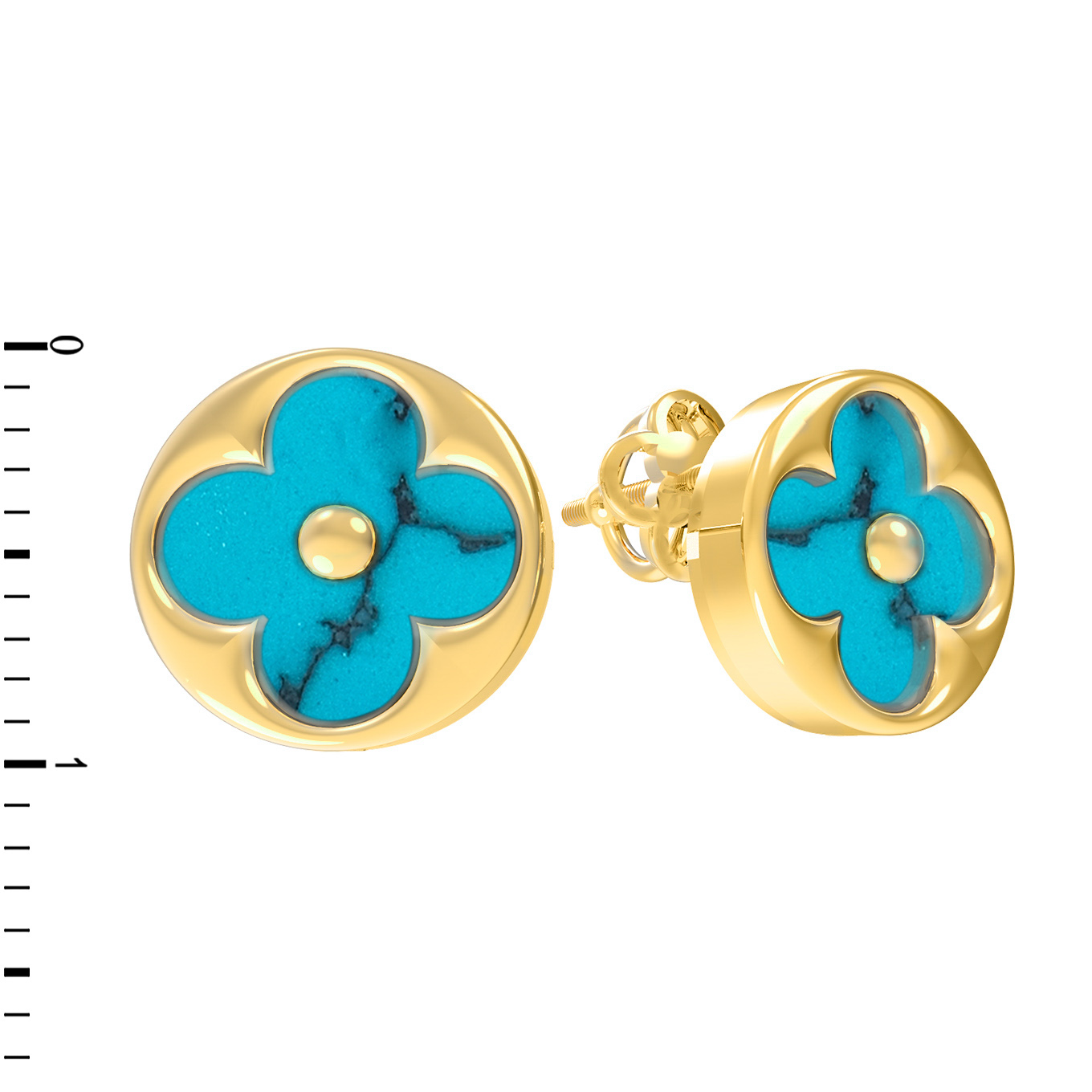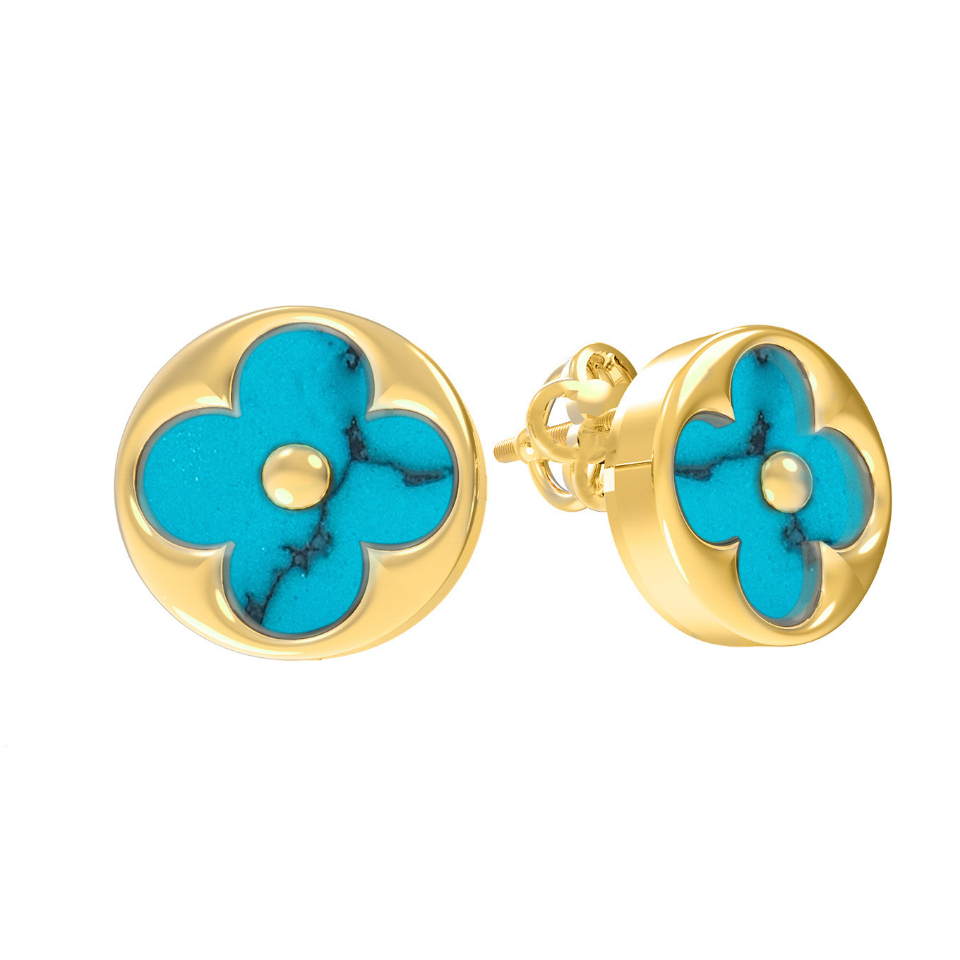Вставки из натуральной бирюзы бирюзового цвета гармонично дополняют золотую оправу. В каждой серьге расположено по одной вставке круглой формы — всего в изделии 2 вставки, которые притягивают взгляд своим насыщенным оттенком и уникальной природной фактурой. Тщательная проработка деталей делает это украшение универсальным дополнением к любому образу.