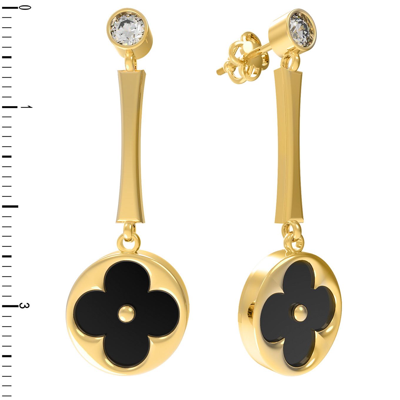 Серьги из лимонного золота c фианитом и ониксом