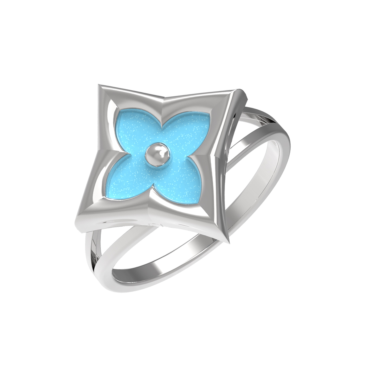 Кольцо из белого золота с бирюзой станет изысканным акцентом вашего образа, подчеркивая безупречный вкус и тягу к утонченной эстетике. Это украшение из коллекции De Luxe — Амальфи выполнено в выразительном дизайне Клевер, который придает изделию особое очарование и символичность. Центральным элементом композиции является единственная вставка бирюзового цвета, заключенная в оригинальную форму ромба. Яркий оттенок камня великолепно контрастирует с холодным блеском благородного металла, создавая гармоничный и притягательный визуальный эффект.