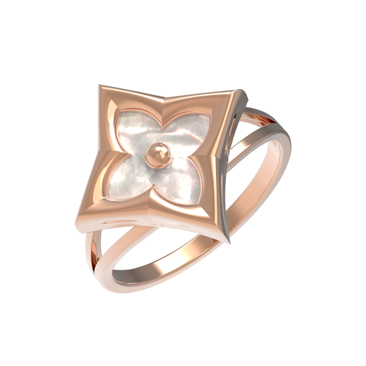 Элегантное кольцо из красного золота 585 пробы станет утонченным дополнением вашего образа. Это украшение из коллекции De Luxe — Амальфи привлекает внимание своим продуманным дизайном в виде четырехлистного клевера. В центре композиции расположена изысканная вставка из перламутра. Натуральный перламутр обладает уникальным переливом, который эффектно контрастирует с благородным блеском красного металла.