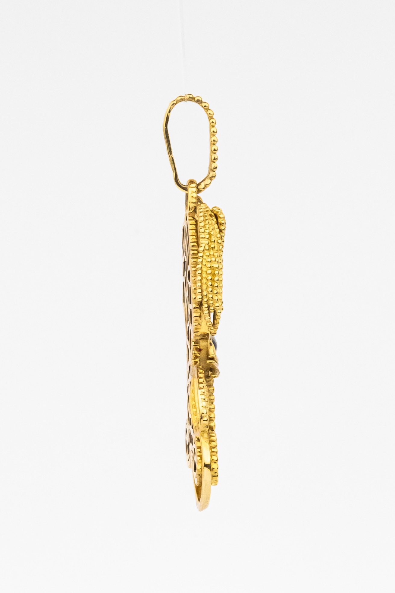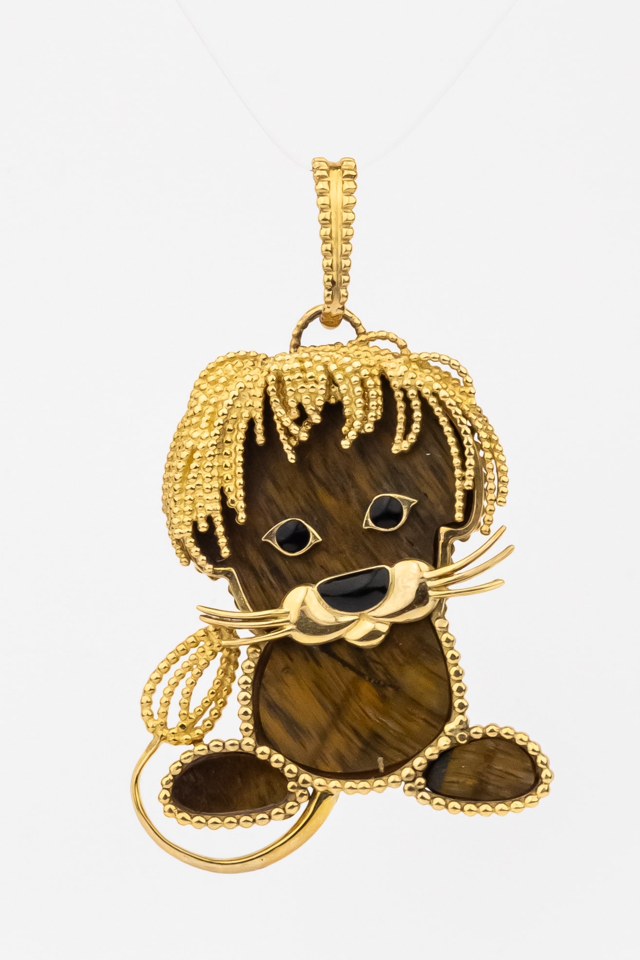 Подвеска из лимонного золота c эмалью и тигровым глазом