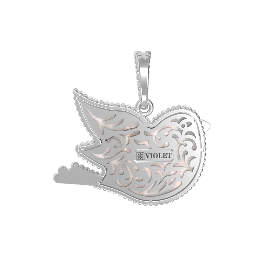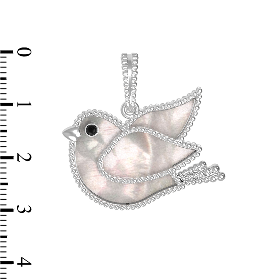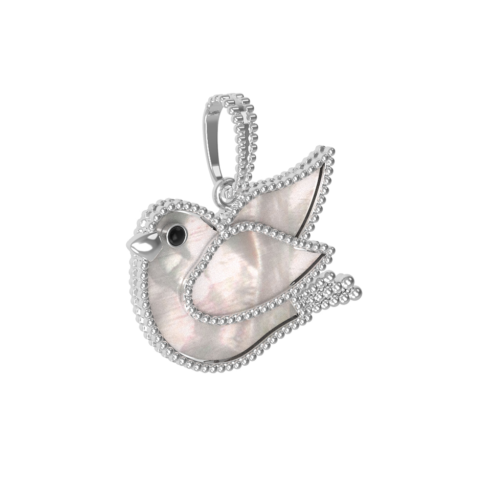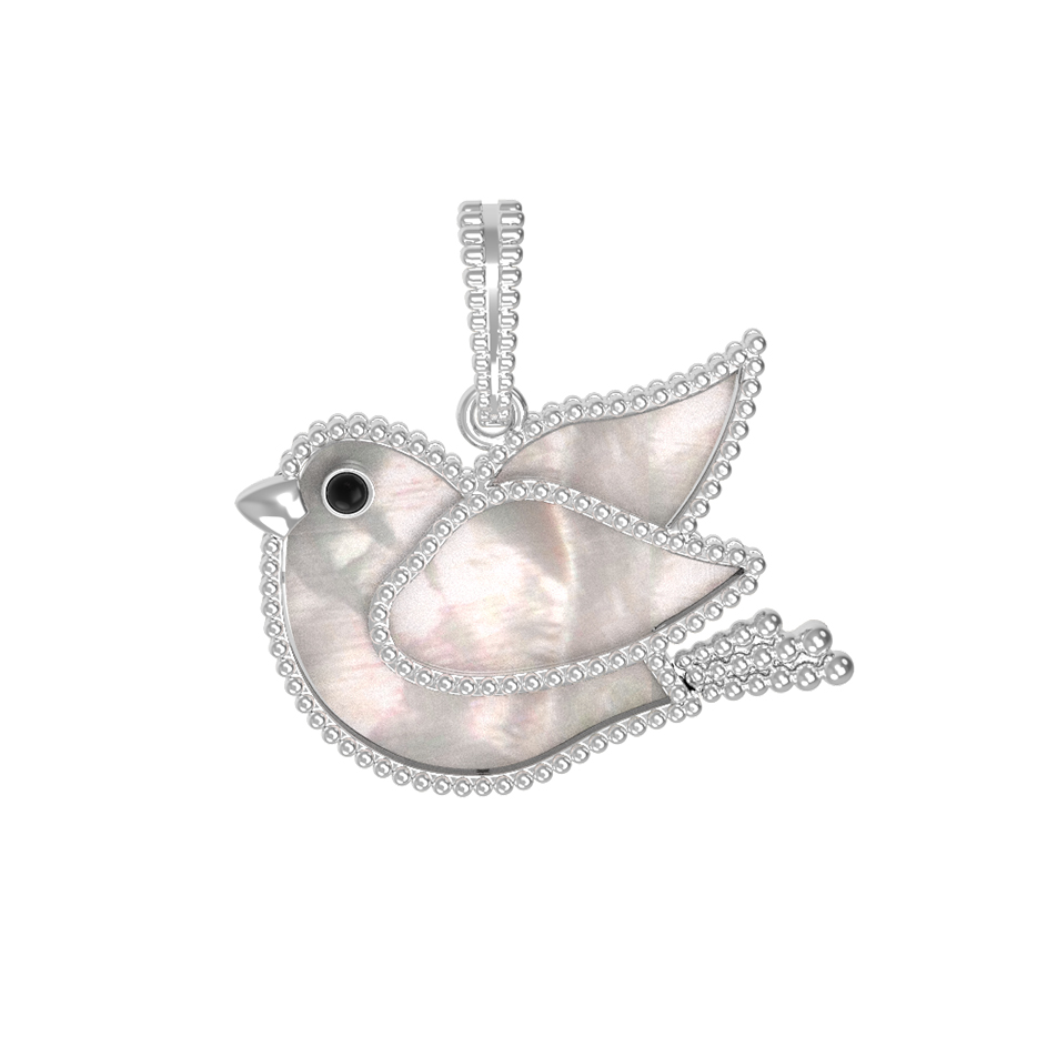 Подвеска из белого золота 585 пробы из коллекции De Luxe — В стране чудес станет утонченным акцентом вашего образа. Изящный ювелирный дизайн в форме птицы сочетает в себе благородство металла и нежность природных материалов. Основным декоративным элементом выступает вставка из перламутра с его характерным перламутровым переливом, дополненная яркой эмалью, что придает изделию особое очарование и выразительность.