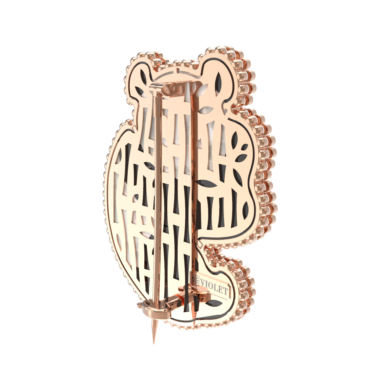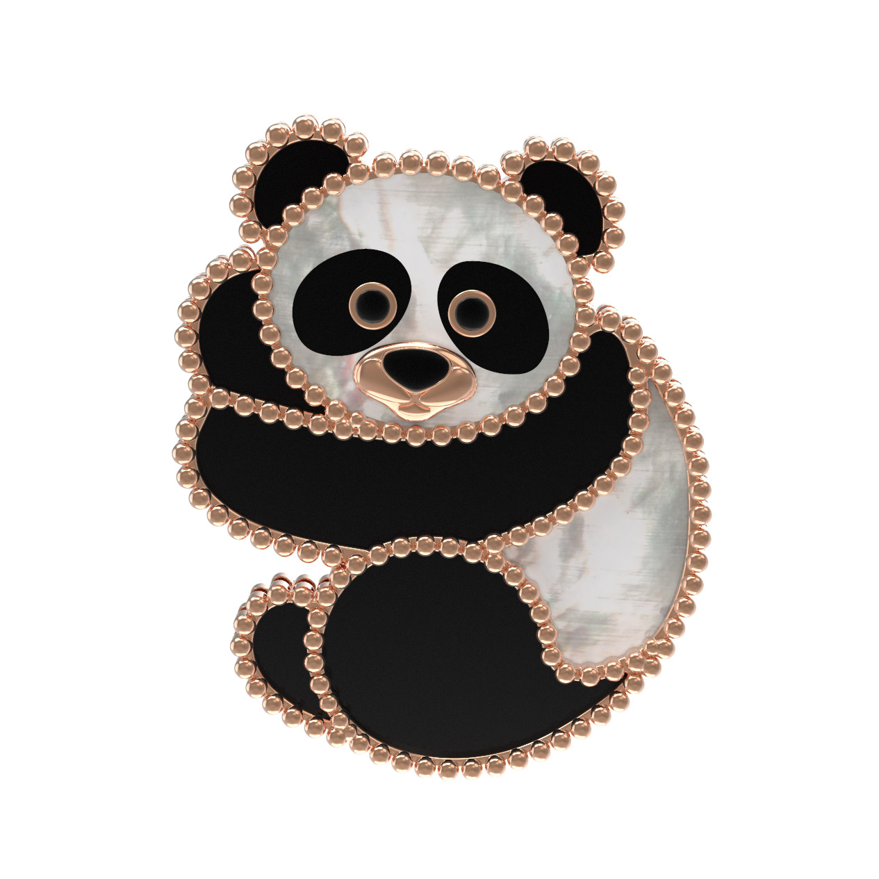Ювелирная брошь Панда из коллекции De Luxe — В стране чудес — это утонченный аксессуар, сочетающий в себе искусство дизайна и мастерство работы с драгоценными материалами. Изделие выполнено из красного золота 585 пробы, которое придает украшению теплый и благородный оттенок. Изящный силуэт панды мастерски проработан в деталях: выразительный контраст создан благодаря сочетанию черного оникса и нежного перламутра. Дополняет композицию ювелирная эмаль, подчеркивающая глубину и чистоту образа.