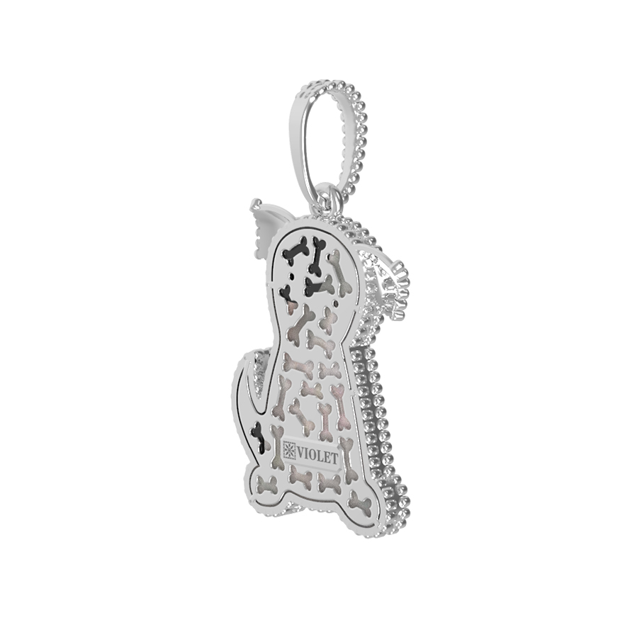Подвеска из белого золота 585 пробы из коллекции De Luxe — В стране чудес станет ярким и трогательным акцентом вашего образа. Дизайн украшения выполнен в форме очаровательной собаки, что придает изделию игривый и в то же время изысканный характер. Это универсальный аксессуар: подвеска подходит как для женщин, так и для мужчин, предпочитающих необычные ювелирные решения с глубокой детализацией.