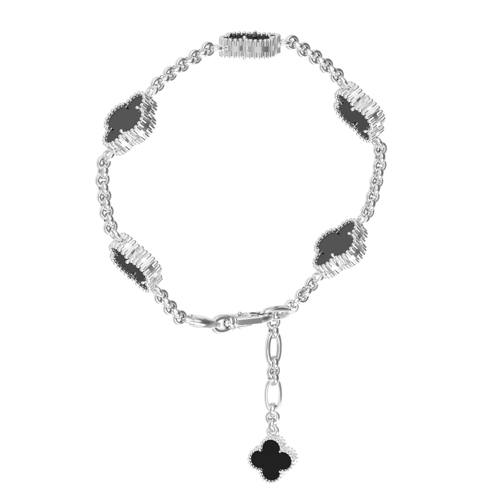 Изделие представлено как самостоятельный аксессуар, но при желании может составить изысканные комплекты с другими украшениями из этой же серии. Благодаря высокому качеству исполнения и классической форме, этот браслет-клевер станет отличным подарком для ценителей утонченных ювелирных изделий, которые предпочитают сочетать в украшениях символизм и безупречный стиль.