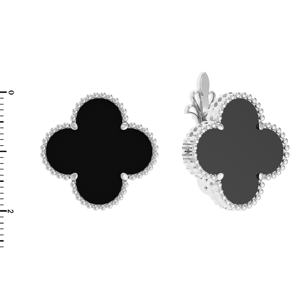 Элегантность в каждом движении — эти серьги из коллекции De Luxe — Клевер станут безупречным акцентом вашего образа. Изделие выполнено из благородного белого золота 585 пробы, которое подчеркивает глубину и таинственность дизайна. Центральным элементом украшения выступает изысканный черный оникс: две вставки насыщенного цвета создают эффектный контраст с холодным блеском драгоценного металла.