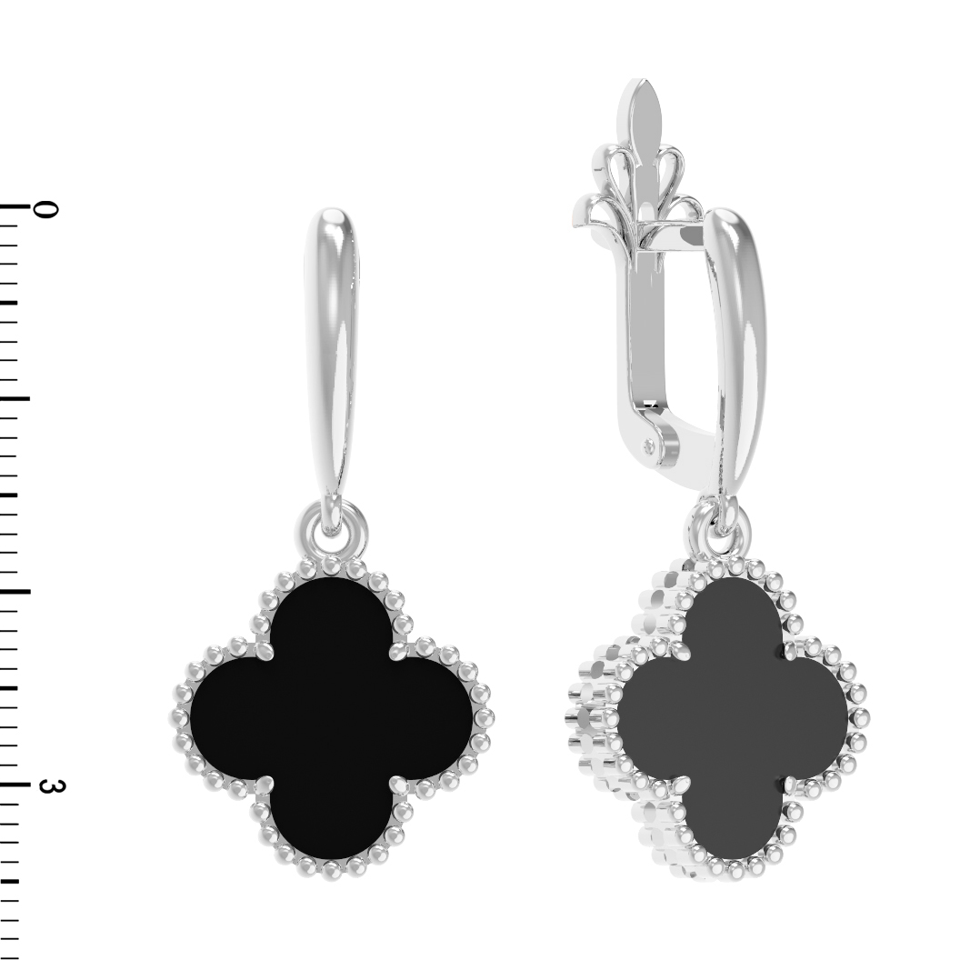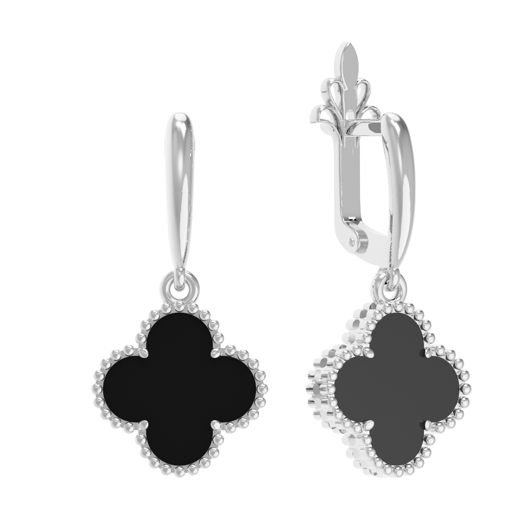 Элегантные серьги из белого золота 585 пробы станут изысканным дополнением к вашему образу. Лаконичный дизайн в виде четырехлистного клевера подчеркивает утонченный вкус своего владельца. Глубокий черный цвет оникса эффектно контрастирует с холодным сиянием белого золота, создавая гармоничное и стильное сочетание. Эти серьги — универсальный аксессуар, который подойдет как для женщин, так и для мужчин, предпочитающих сдержанную роскошь.