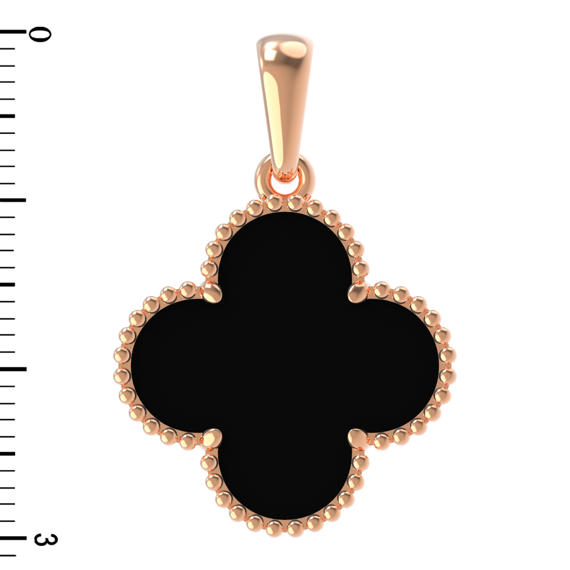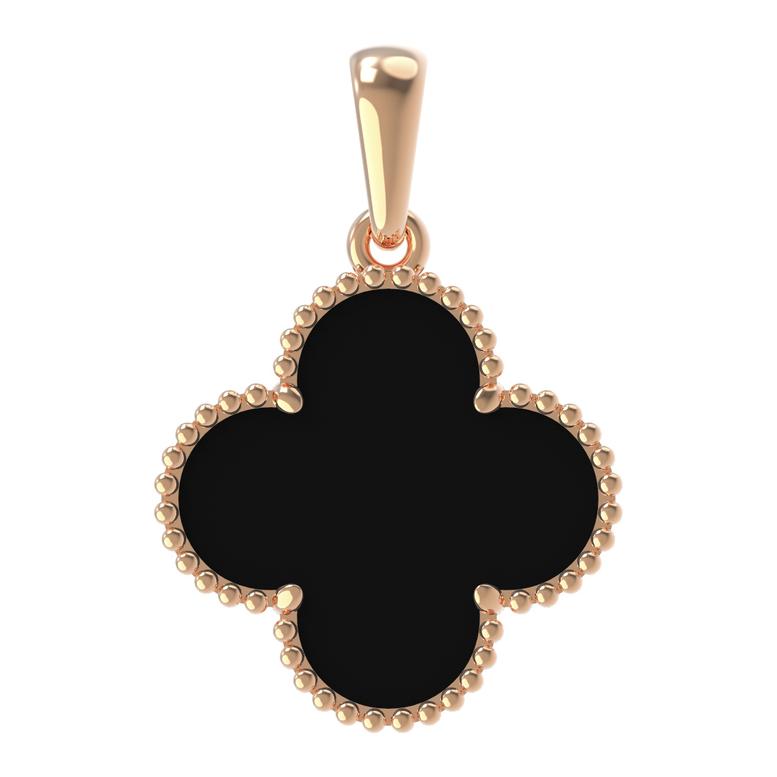 Подвеска из красного золота 585 пробы — это воплощение элегантности и символизма в вашем повседневном образе. Утонченное украшение выполнено в узнаваемом дизайне «Клевер», который давно стал классикой ювелирного искусства. Центральным элементом композиции является вставка из благородного черного оникса, создающая изысканный контраст с теплым сиянием драгоценного металла. Качественная обработка деталей и лаконичная форма делают этот аксессуар универсальным решением для любого стиля.