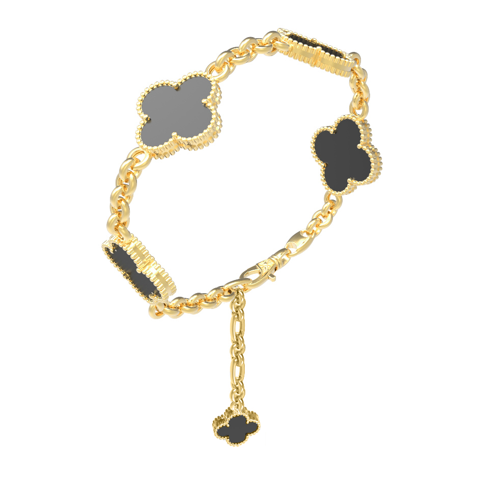 Элегантность и утонченность соединились в этом изысканном браслете, который станет ключевым акцентом вашего образа. Ювелирное изделие из коллекции De Luxe — Клевер выполнено из премиального лимонного золота 585 пробы, чей благородный солнечный оттенок великолепно подчеркивает глубину черных вставок. Дизайн украшения строится вокруг изящных элементов в форме клевера, символизирующих удачу и гармонию.