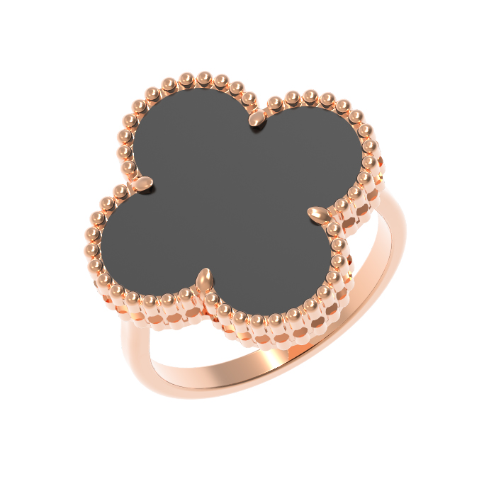 Изделие доступно в широкой размерной сетке от 15 до 23, что позволяет подобрать идеальную посадку для каждого. Это кольцо является частью коллекции De Luxe — Клевер, поэтому вы легко можете составить гармоничный комплект, дополнив украшение другими изделиями с аналогичным дизайном. Выбирая украшения с ониксом, вы отдаете предпочтение классике, которая всегда остается актуальной.