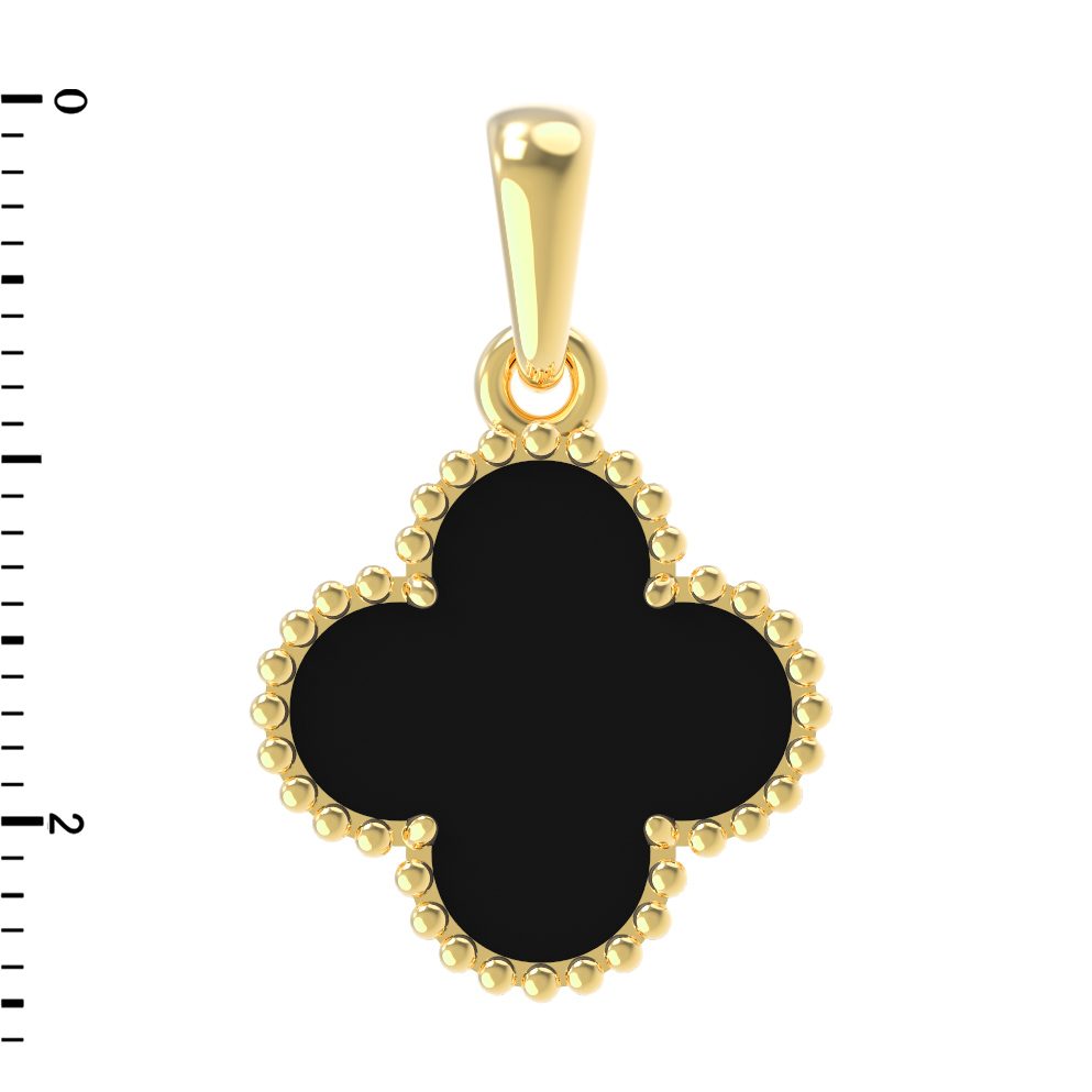 Подвеска из лимонного золота 585 пробы — это воплощение элегантности и утонченного стиля. Центральным элементом украшения является изысканная вставка из черного оникса, которая глубоким, насыщенным цветом контрастирует с теплым блеском драгоценного металла. Дизайн в форме клевера придает изделию особое очарование, делая его узнаваемым аксессуаром для ценителей ювелирного искусства.