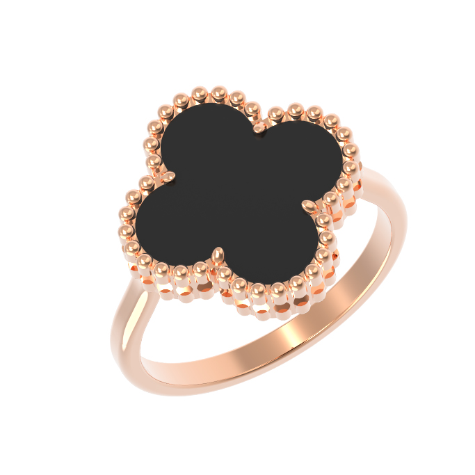 Изысканное кольцо из золота c ониксом из коллекции De Luxe — Клевер станет воплощением утонченного стиля и лаконичной роскоши. Дизайн украшения выполнен в популярной форме клевера, которая давно стала символом удачи и женственности. Центральным элементом композиции является одна крупная вставка — черный оникс с глубоким, насыщенным цветом, идеально гармонирующий с теплым блеском металла.