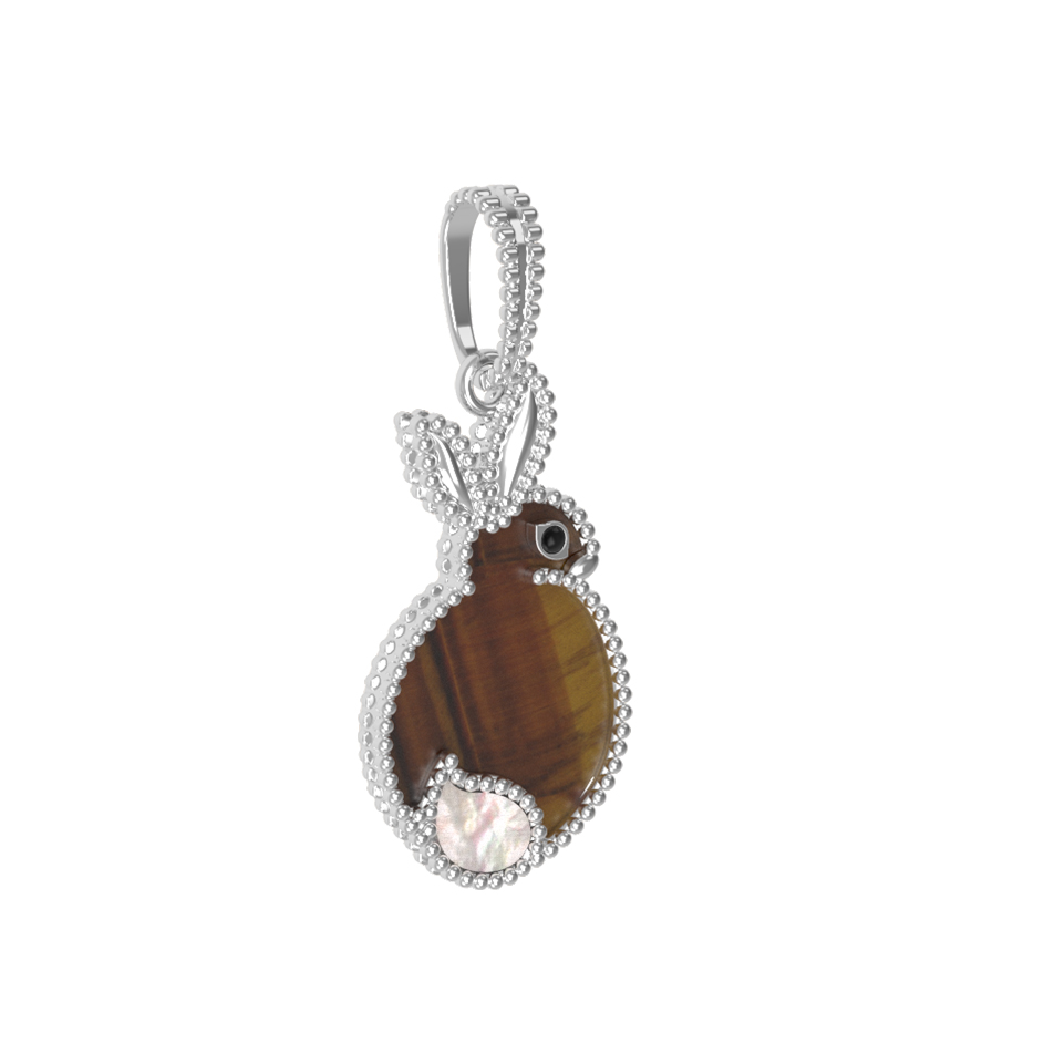 Подвеска из белого золота c эмалью, тигровым глазом и перламутром