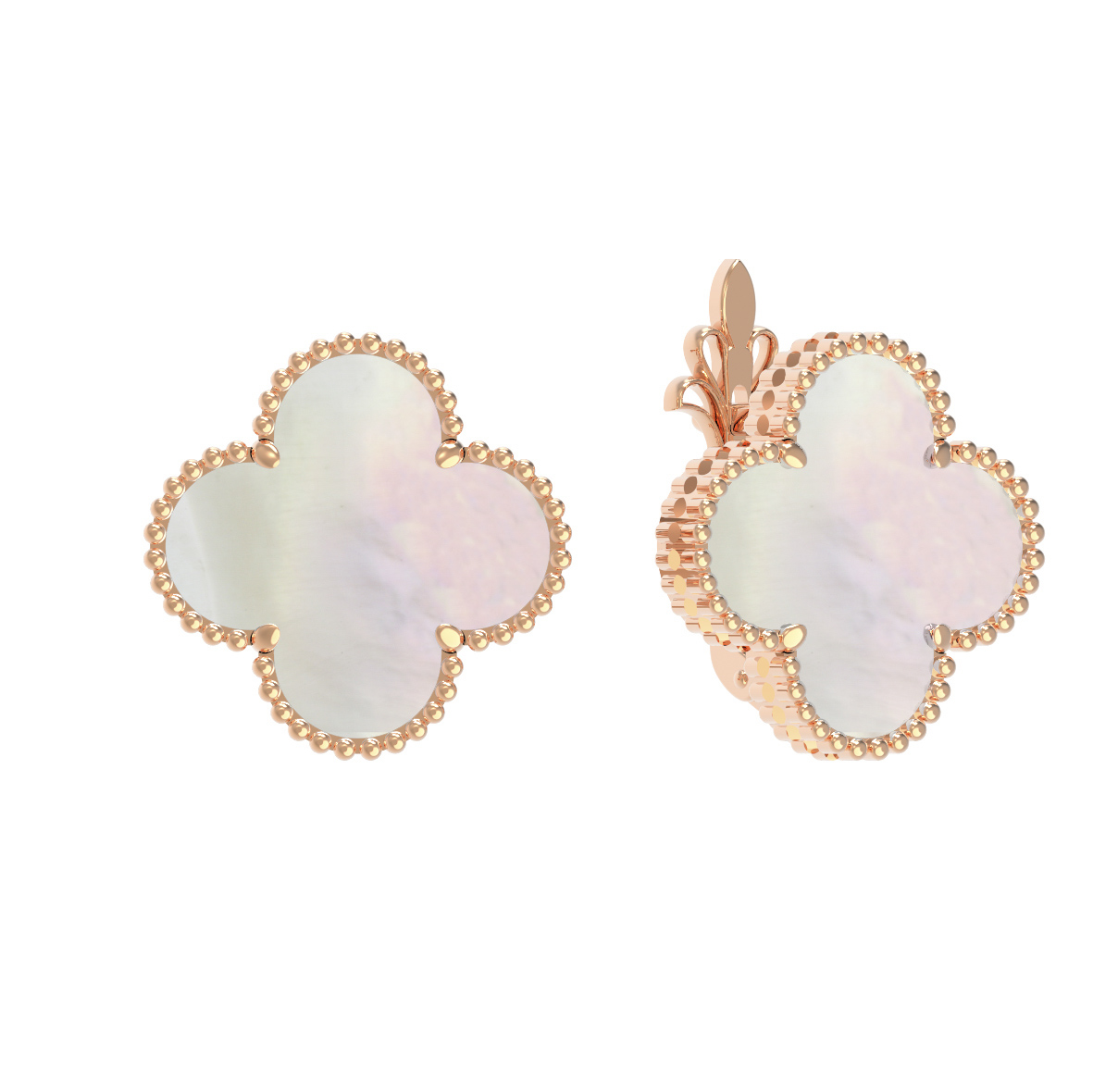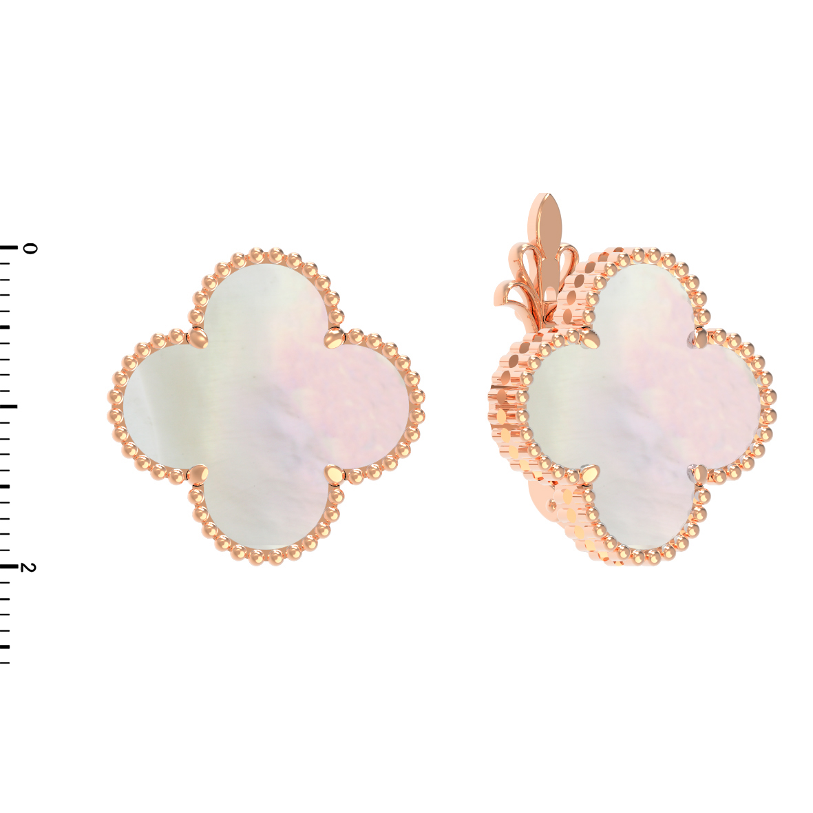 Дизайн изделия выполнен в форме культового четырехлистного клевера, символизирующего гармонию и успех. Тщательная обработка каждой детали подчеркивает статусность аксессуара. Перламутр обладает уникальным цветом и нежным сиянием, придавая серьгам особую глубину. Такие серьги из золота с перламутром идеально подходят для тех, кто ценит классику в современном прочтении.