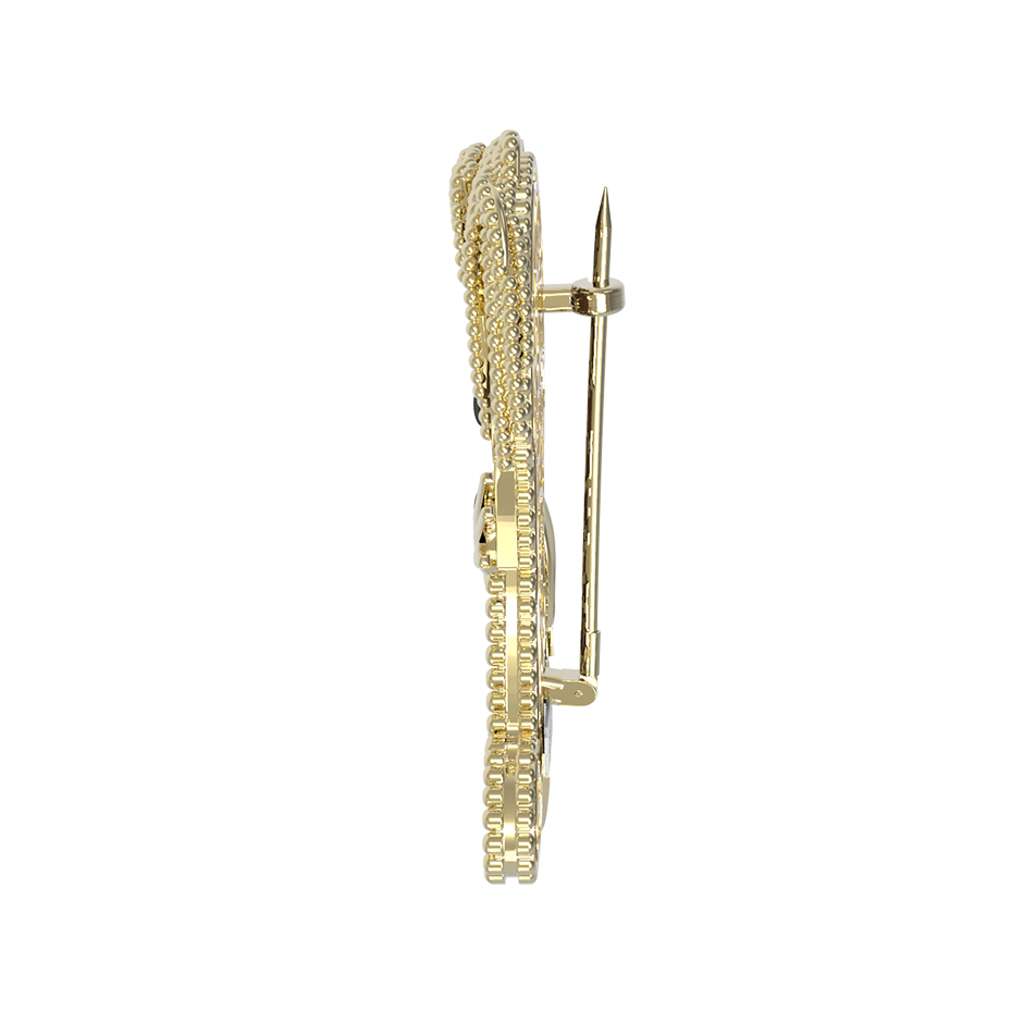 В этой модели гармонично соединены три вставки, создающие эффектную игру фактур и цветов. Брошь привлекает внимание своей необычной формой и качественным исполнением. Благодаря своей стилистике, это украшение станет идеальным дополнением как для женского, так и для мужского гардероба. Оно легко вписывается в концепцию статусных аксессуаров, которые подчеркивают индивидуальность владельца. Изделие прекрасно смотрится самостоятельно, но также может стать частью гармоничного образа, если подобрать другие украшения в аналогичной стилистике, ведь серия De Luxe — В стране чудес предполагает создание полноценных комплектов.