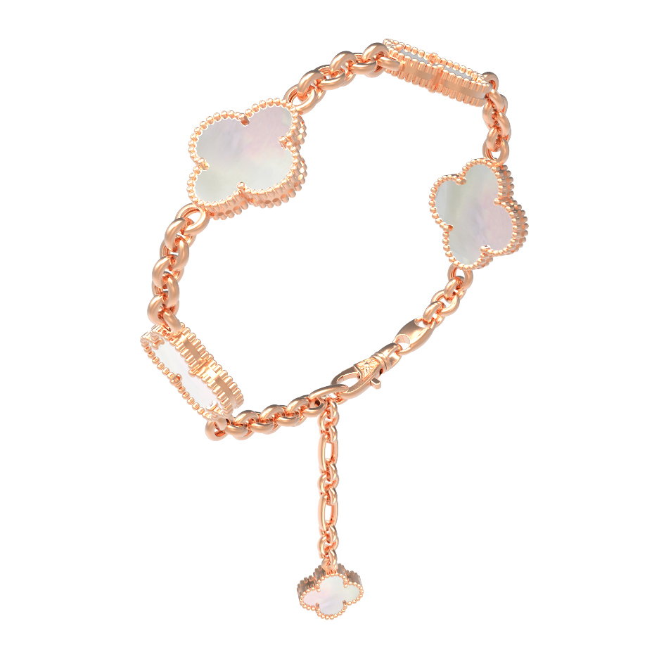 Элегантный браслет из красного золота 585 пробы станет утонченным дополнением вашего образа, подчеркивая безупречный вкус и внимание к деталям. Изделие из коллекции De Luxe — Клевер выполнено в популярном дизайне в форме клевера, который гармонично сочетает в себе классические традиции и современные ювелирные тренды. Центральным элементом украшения является изысканный перламутр, чей нежный перелив придает изделию особое благородство и мягкое сияние.