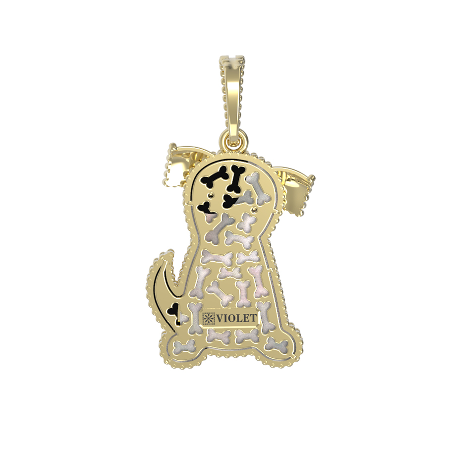 Подвеска из лимонного золота 585 пробы — это изысканное ювелирное украшение, которое станет ярким акцентом вашего образа. Дизайн изделия выполнен в виде милой собаки, что придает украшению игривый, но при этом статусный характер. Основа выполнена в благородном лимонном цвете золота, который эффектно подчеркивает красоту используемых вставок.