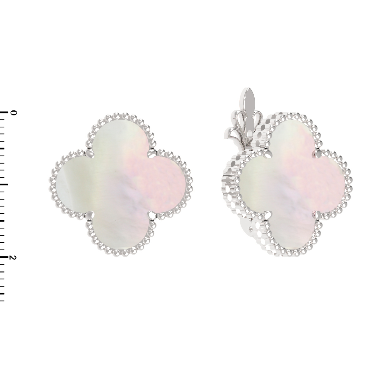 Серьги из белого золота 585 пробы с перламутром станут утонченным дополнением к вашему образу. Лаконичный и узнаваемый дизайн в виде четырехлистного клевера делает это изделие универсальным аксессуаром, который подчеркнет природную грацию и вкус своей владелицы. Нежное сияние перламутра гармонично сочетается с холодным блеском белого металла, создавая образ, наполненный благородством и спокойной элегантностью.