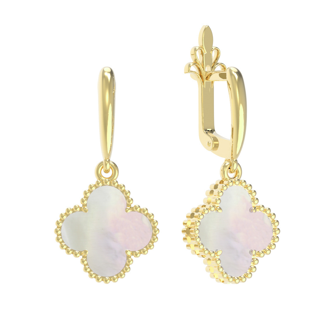 Центральным элементом композиции является вставка из перламутра с мягким переливом, которая гармонично подчеркивает теплый оттенок лимонного золота. Тщательно проработанная форма делает эти серьги универсальными: они подходят как для женщин, так и для мужчин, ценящих стильные и статусные аксессуары. Надежная застежка обеспечивает комфорт при ношении, позволяя украшению изящно покачиваться при каждом вашем движении.