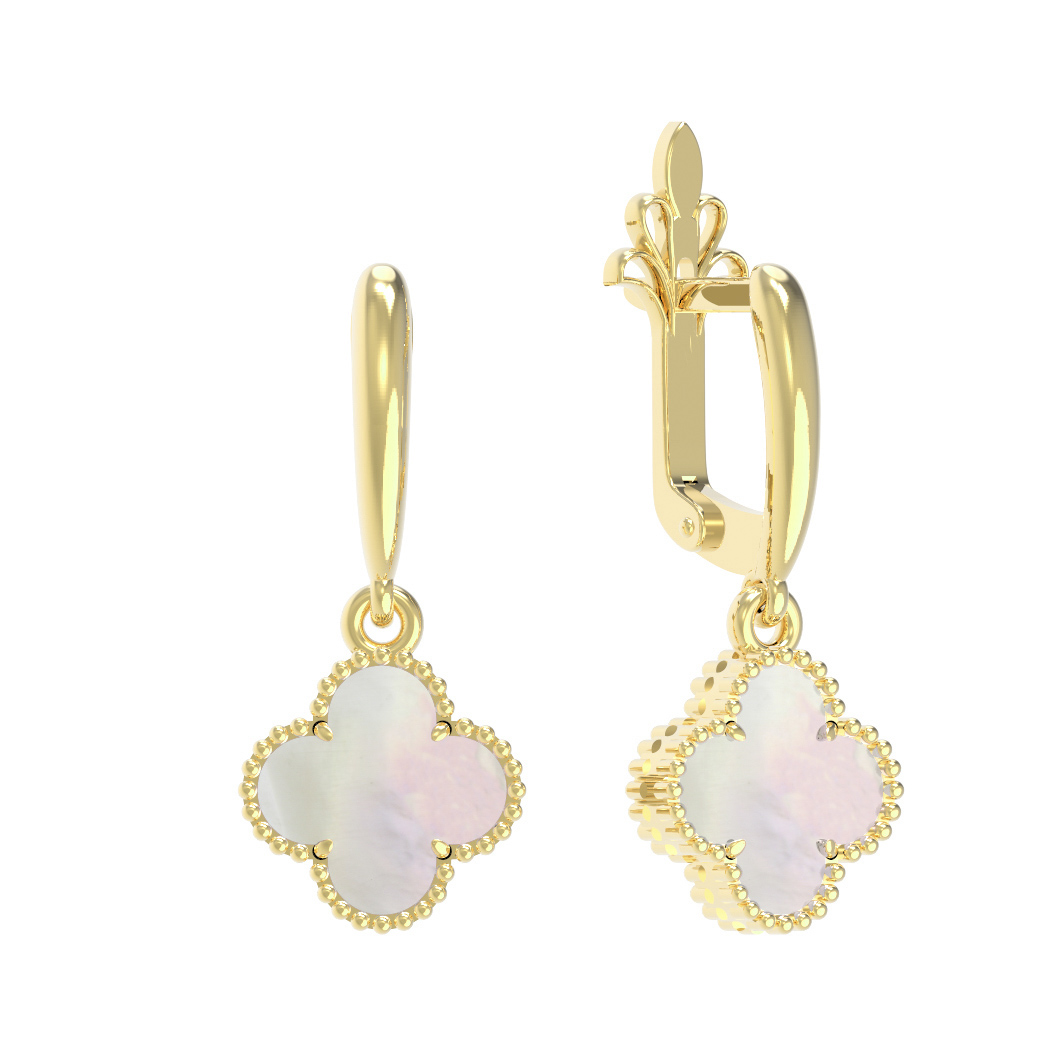 Изысканные серьги из лимонного золота 585 пробы из коллекции De Luxe — Клевер станут воплощением элегантности в вашем образе. Дизайн в форме клевера — это классика, которая не теряет своей актуальности, привнося в стиль нотки утонченности и легкости. Лимонный оттенок золота гармонично сочетается с мягким сиянием перламутра, создавая благородную композицию, притягивающую восхищенные взгляды.
