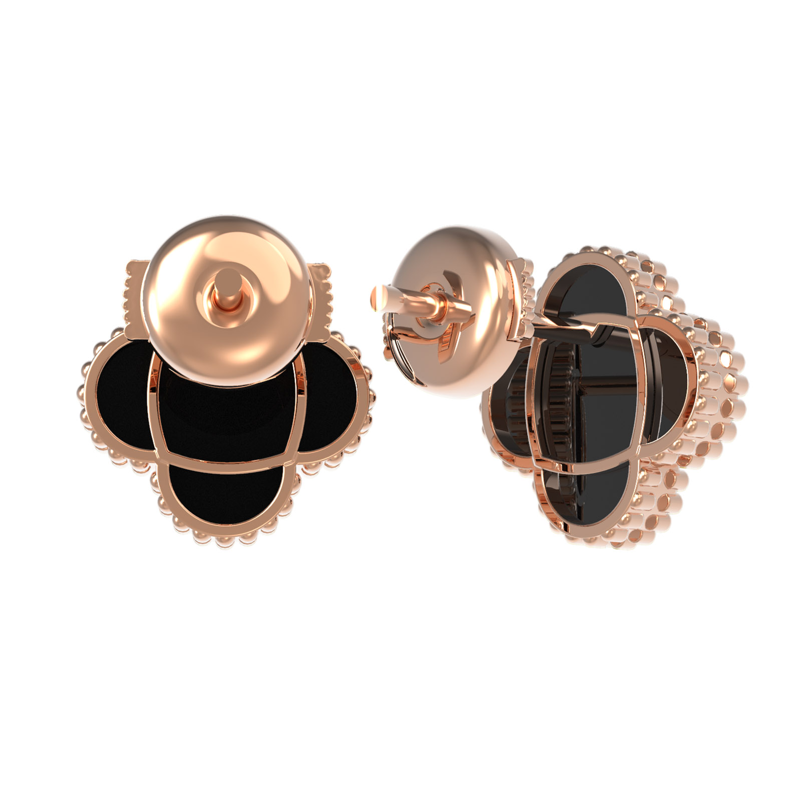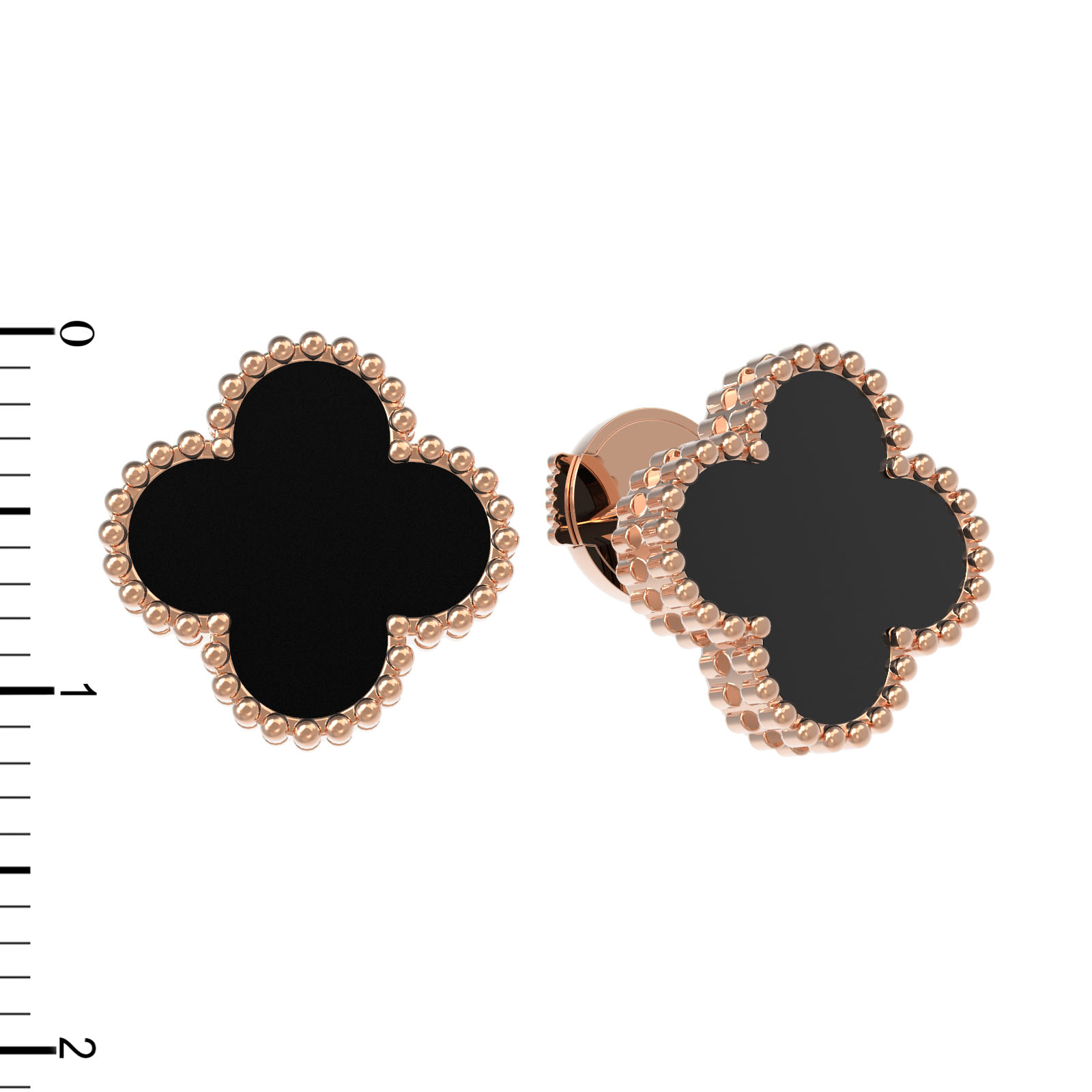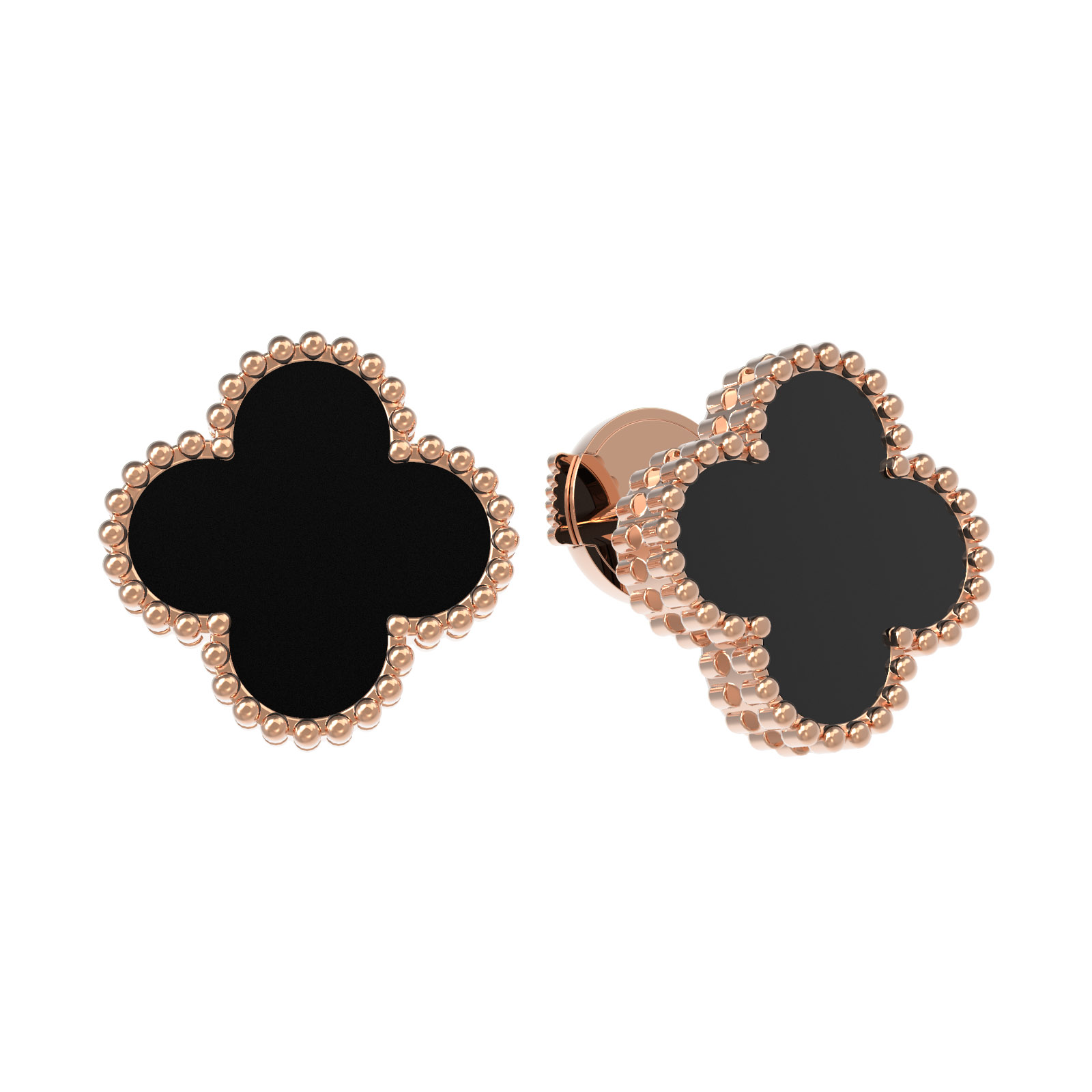 Эти серьги созданы для тех, кто ценит универсальность в ювелирных украшениях, ведь дизайн в виде клевера одинаково органично смотрится как в женских, так и в мужских образах. Изящная окантовка по контуру придает изделию дополнительный объем и выразительность. Золото красного цвета подчеркивает глубину черных вставок, превращая серьги в стильный аксессуар для повседневного ношения или торжественных выходов.