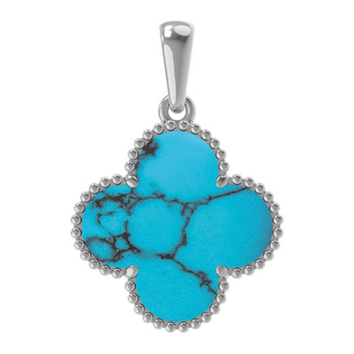 Подвеска из коллекции De Luxe — Клевер воплощает собой гармонию ювелирного мастерства и природной эстетики. Это изящное украшение выполнено из белого золота 585 пробы, чей холодный блеск идеально сочетается с ярким, насыщенным цветом вставки. Центральным элементом композиции является одна крупная вставка бирюзы бирюзового цвета, обрамленная аккуратной металлической окантовкой. Дизайн в виде клевера придает изделию особое очарование, делая его узнаваемым и стильным акцентом в любом образе.