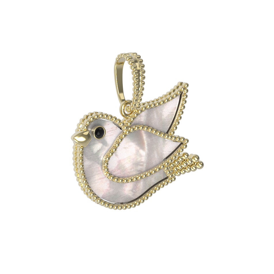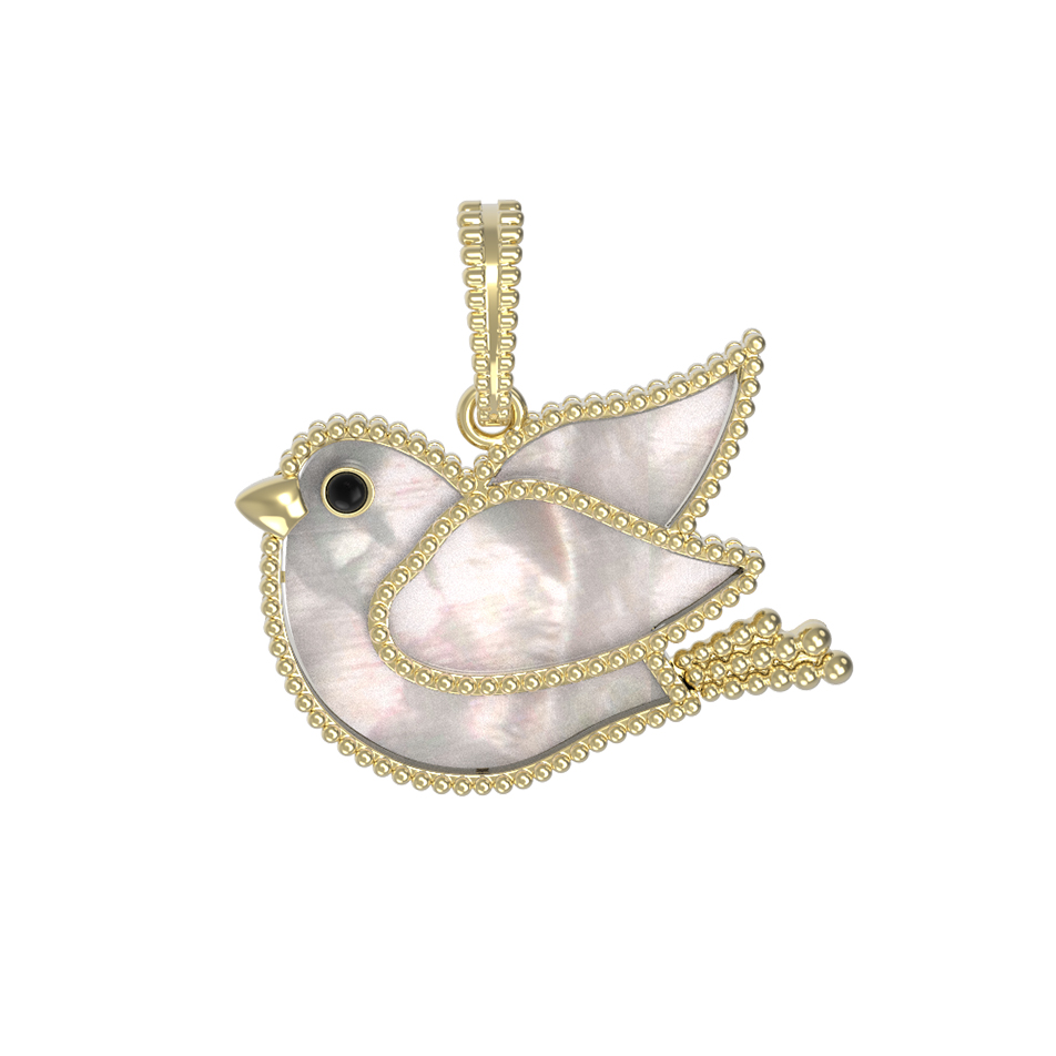 Изящная подвеска из лимонного золота 585 пробы станет утонченным дополнением вашего образа. Это украшение из коллекции De Luxe — В стране чудес привлекает внимание своим необычным дизайном — миниатюрный силуэт птицы, выполненный с особой тщательностью, символизирует легкость и свободу. В качестве вставок использован нежный перламутр, который переливается мягким перламутровым блеском, создавая эффект глубины и объема.