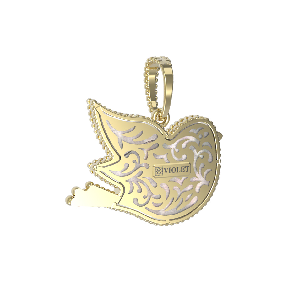 Контуры изделия деликатно подчеркнуты разноцветной эмалью, что добавляет аксессуару выразительности и художественной завершенности. Сочетание лимонного золота с перламутром и яркими акцентами эмали делает это изделие универсальным — подвеска подойдет как для женщин, так и для мужчин, предпочитающих стильные и оригинальные ювелирные украшения.