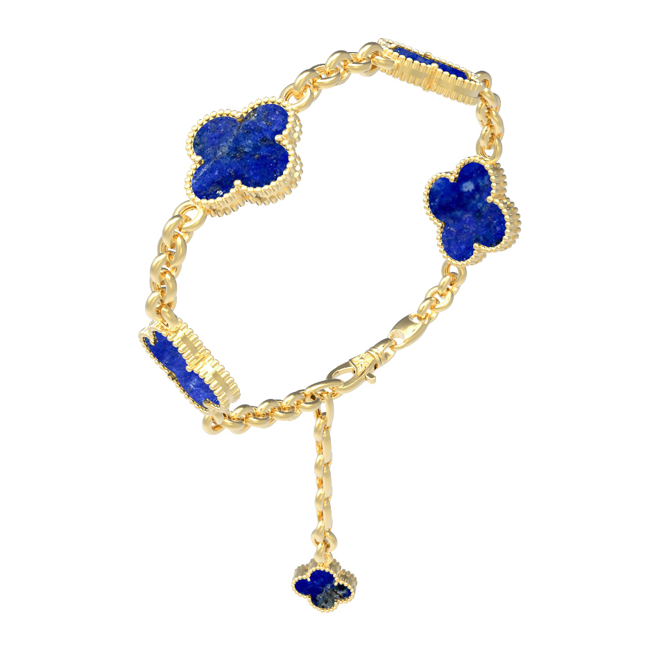 В центре внимания композиции находится насыщенный синий лазурит. Пять вставок этого драгоценного камня глубокого цвета создают эффектный контраст с солнечным блеском лимонного золота. Ювелиры тщательно проработали каждую деталь, чтобы браслет выглядел безупречно. Благодаря своей универсальной эстетике, это украшение подойдет как для женщин, так и для мужчин, добавляя образу нотку роскоши и индивидуальности.