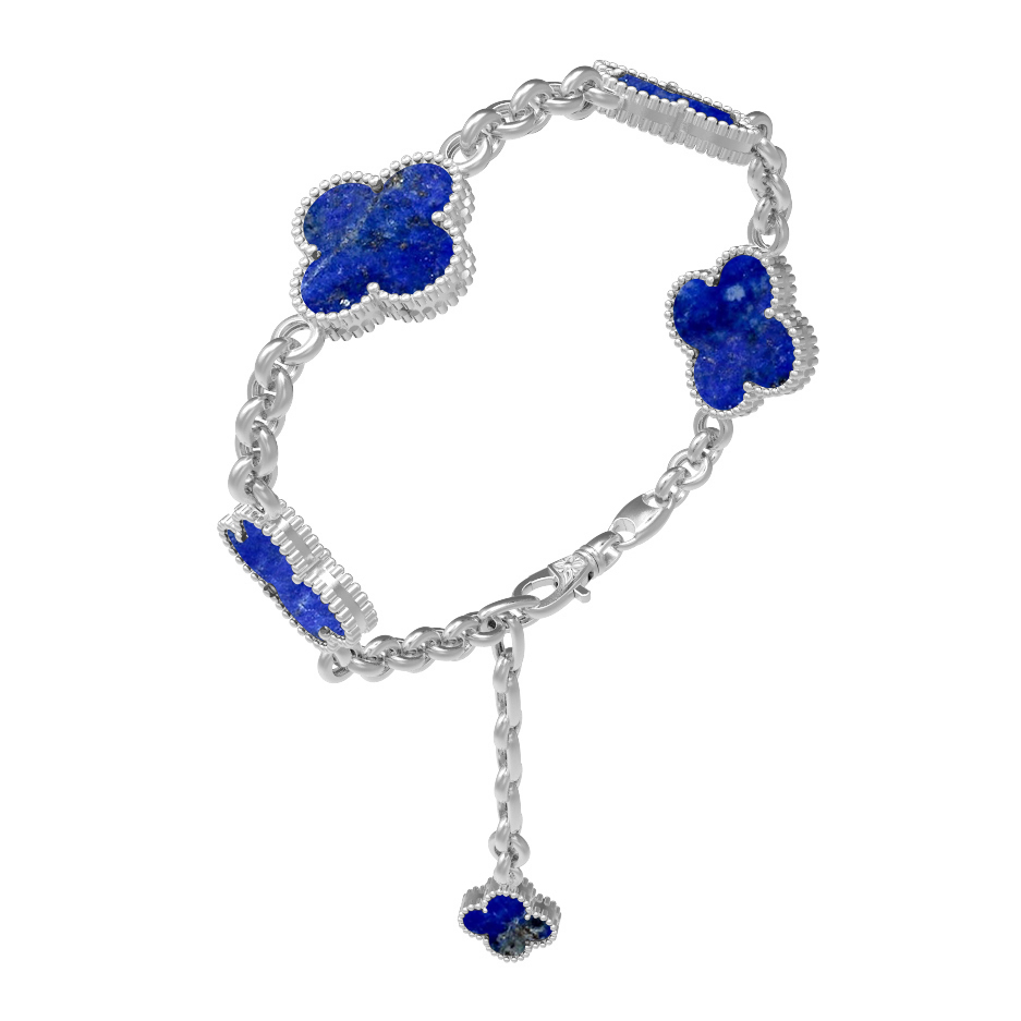 Модель выполнена с вниманием к каждой детали, что гарантирует долговечность и комфорт при ношении. Браслет гармонично смотрится как самостоятельный аксессуар, так и в составе комплекта, позволяя вам создавать продуманные и целостные ювелирные ансамбли. Лазурит обладает природной красотой, а классическая форма клевера добавляет изделию особую привлекательность. Инвестируйте в качество и стиль, выбирая ювелирные изделия, которые будут радовать вас долгие годы.