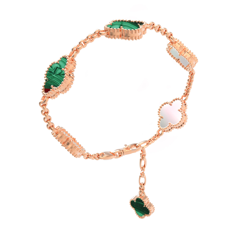 Данное изделие прекрасно дополняет другие украшения из серии De Luxe — Клевер, позволяя создавать элегантные комплекты. Лаконичная структура и внимание к деталям делают этот браслет достойным дополнением коллекции драгоценностей для тех, кто ценит эстетику высокого ювелирного дела и безупречное качество исполнения. Утонченное сочетание красного золота и натуральных вставок позволяет носить этот аксессуар как с повседневными, так и с вечерними нарядами.