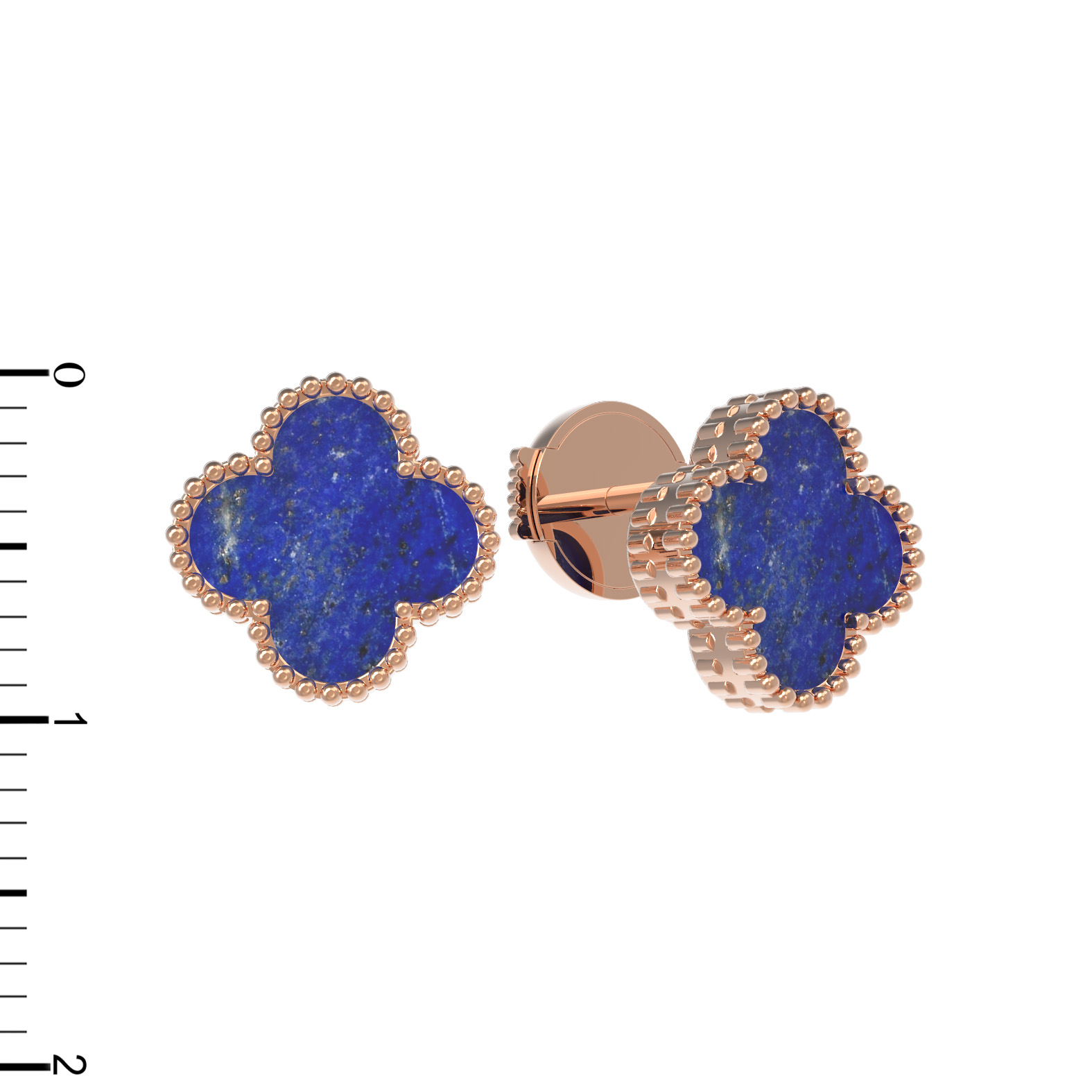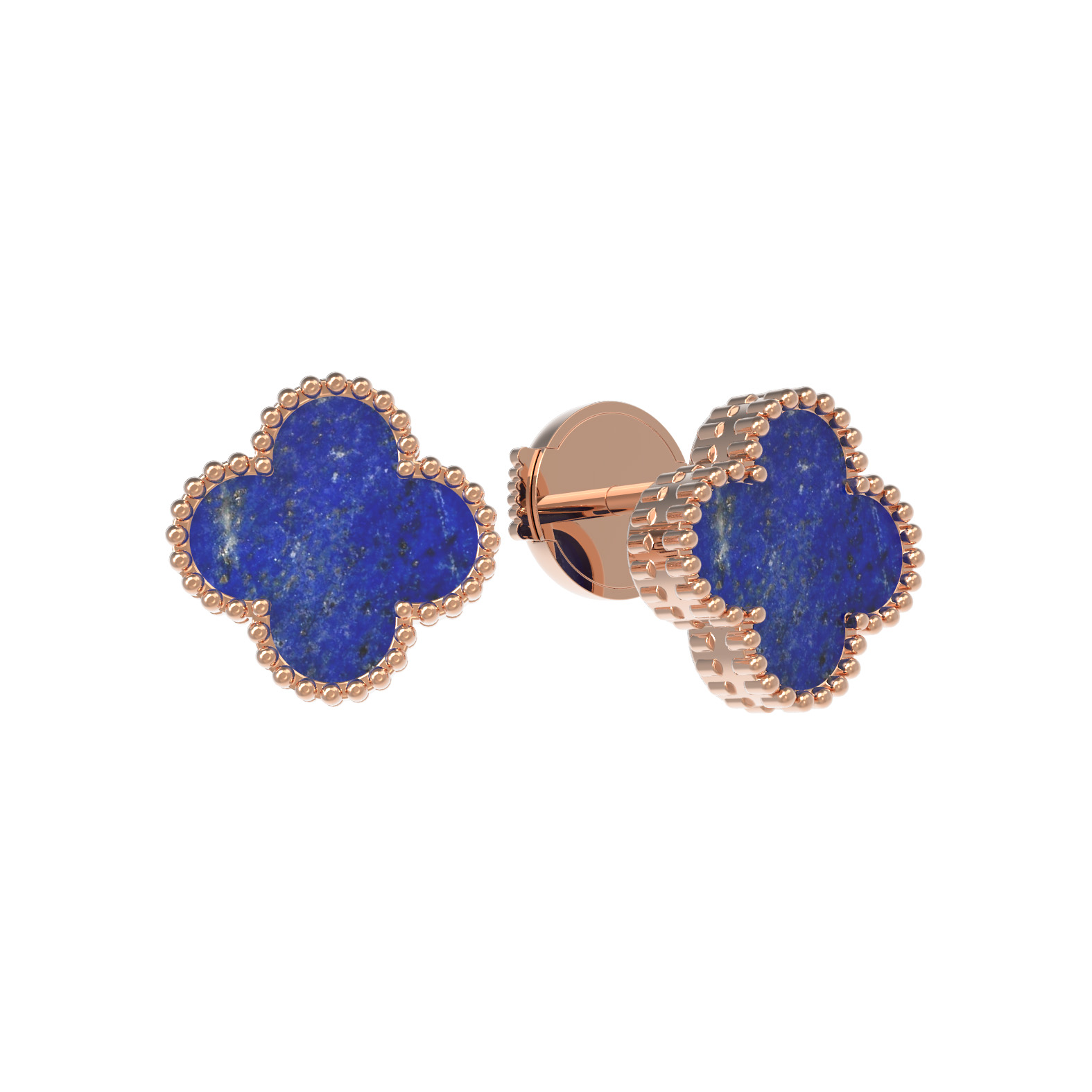 Элегантные серьги из красного золота 585 пробы из коллекции De Luxe — Клевер станут безупречным дополнением вашего образа. Дизайн изделия выполнен в форме клевера — символа удачи и гармонии, который придает украшению особую эстетическую привлекательность. В центре композиции расположены две вставки из натурального лазурита глубокого синего цвета, создающие выразительный контраст с теплым оттенком драгоценного металла.