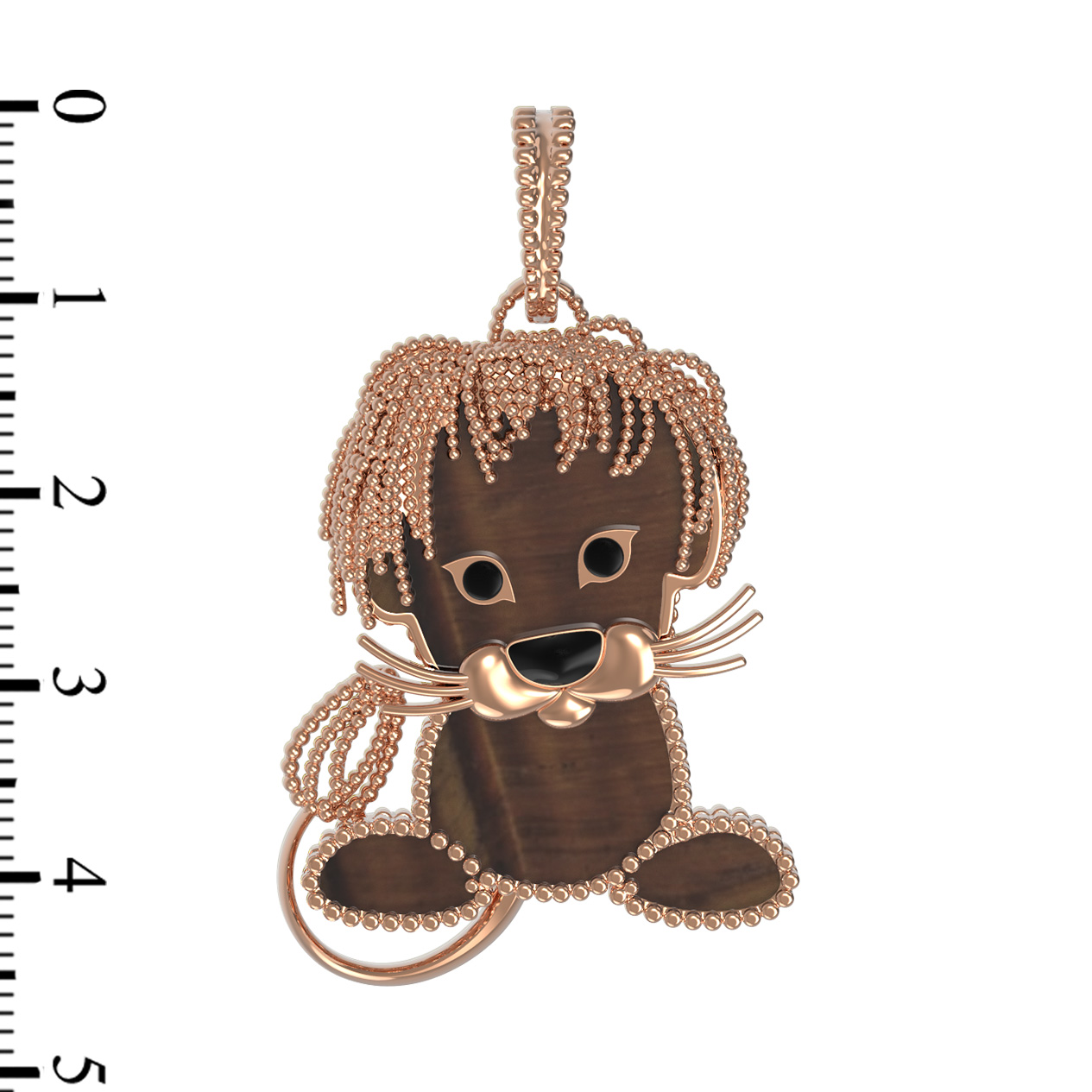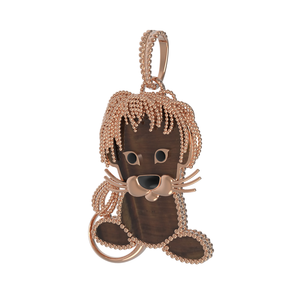 Подвеска из красного золота 585 пробы из коллекции De Luxe — В стране чудес станет ярким акцентом вашего образа. Дизайнеры воплотили в этом ювелирном изделии образ льва, создав украшение с характером и особым настроением. В качестве вставок использованы три элемента, сочетающие глубокий, переливчатый тигровый глаз оранжевого оттенка и выразительные детали, покрытые разноцветной эмалью.