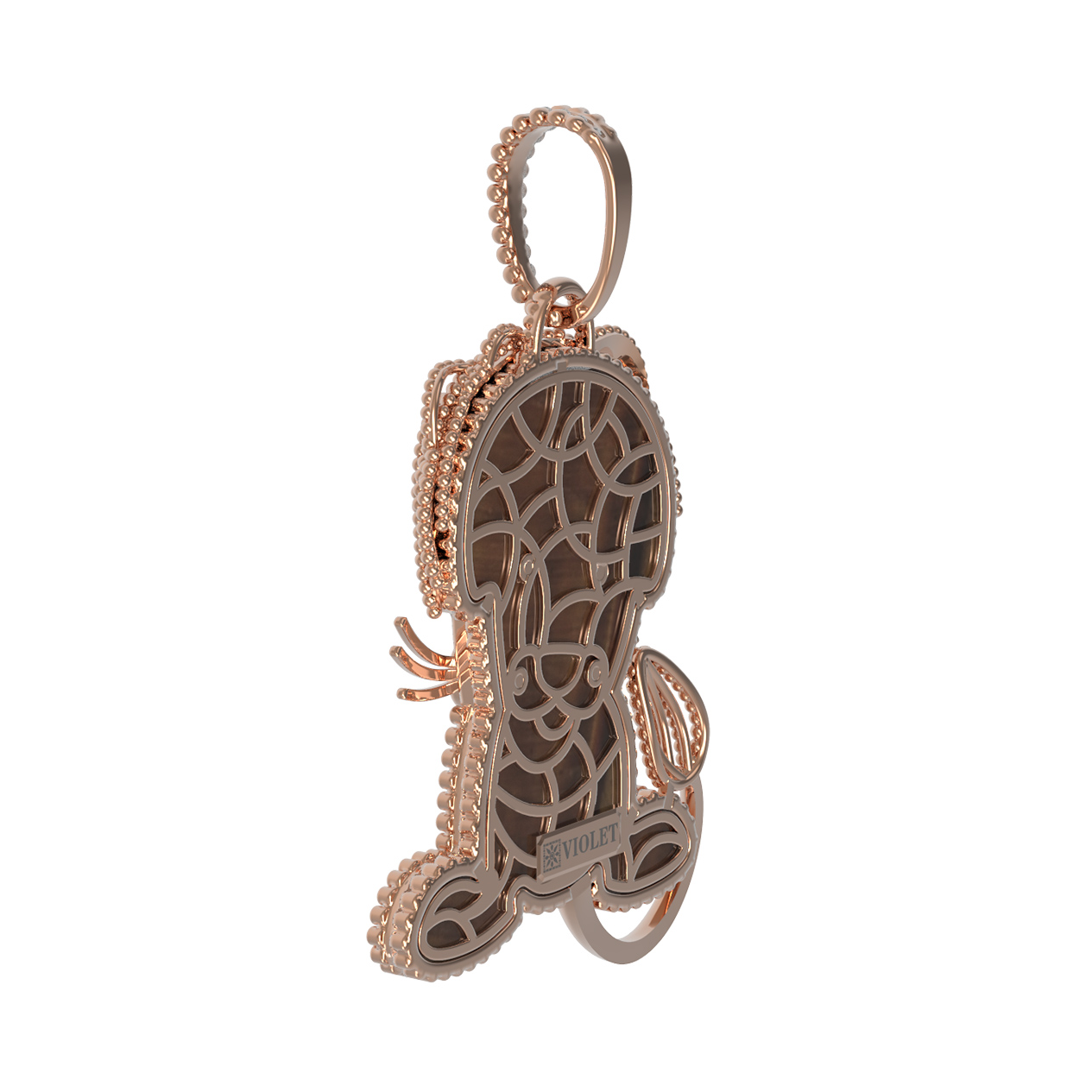 Тщательная проработка деталей придает подвеске реалистичность и шарм. Сочетание благородного красного золота и природных камней делает изделие универсальным — оно гармонично дополнит как женский, так и мужской стиль. Эта подвеска входит в серию, что позволяет легко составить полноценный комплект, подчеркивающий ваш безупречный вкус и статус. Такое ювелирное украшение подойдет тем, кто ценит эксклюзивный дизайн и качественные материалы.