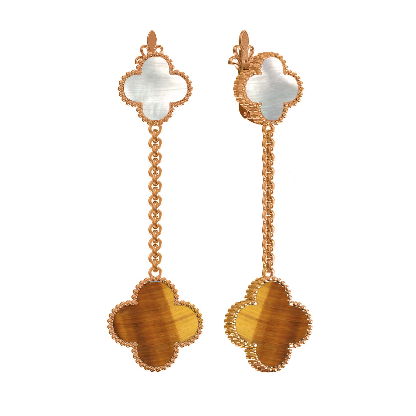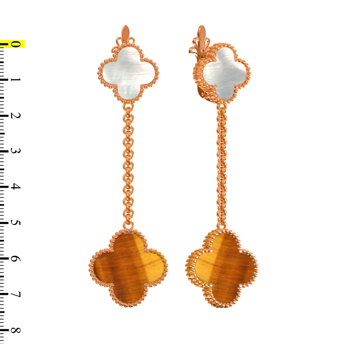 В этих серьгах гармонично сочетаются две вставки: нежный перламутр и выразительный тигровый глаз. Оранжевый оттенок тигрового глаза создает притягательный контраст с мягким блеском перламутра, делая аксессуар по-настоящему уникальным. Длинная подвесная конструкция на цепочке придает динамику и делает серьги заметными при каждом вашем движении.