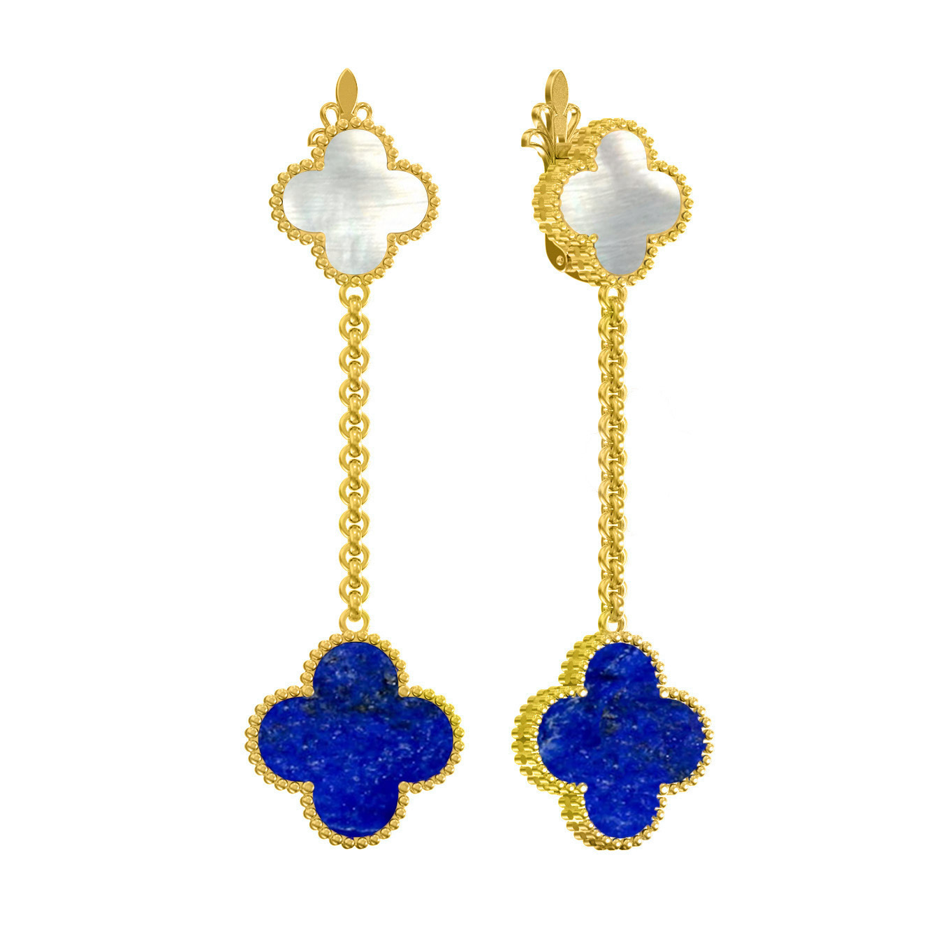 В центре внимания — изысканное сочетание материалов. Нежный перламутр с его мягким сиянием и глубокий синий лазурит создают гармоничный дуэт, приковывающий взгляды. В изделии использовано 2 вставки, которые подчеркивают статусность и уникальный стиль украшения. Конструкция серег отличается подвижностью и легкостью, делая их идеальным выбором как для повседневных образов, так и для торжественных выходов.