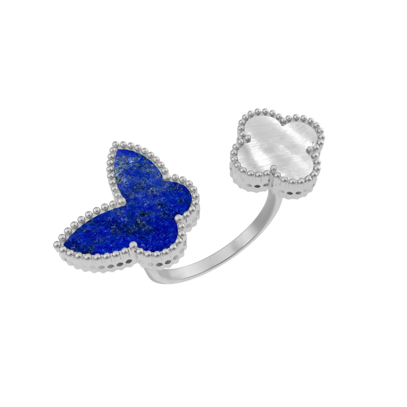 Кольцо из белого золота c лазуритом и перламутром