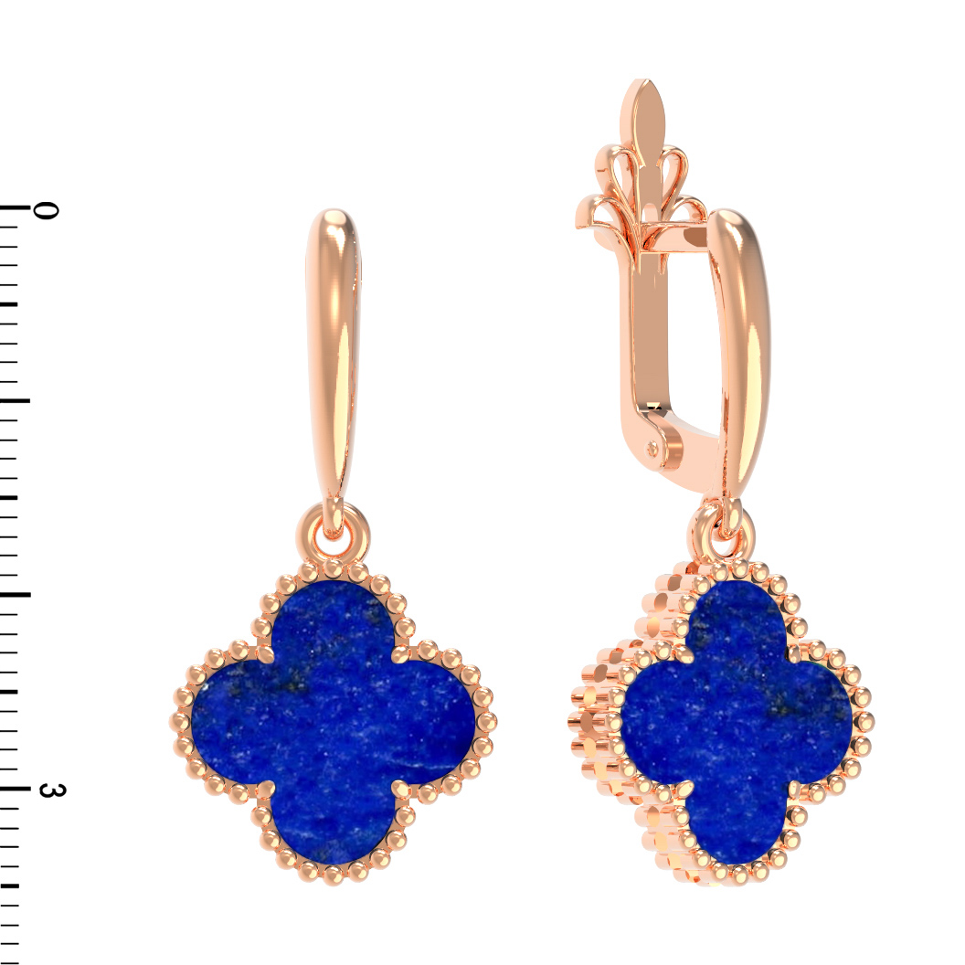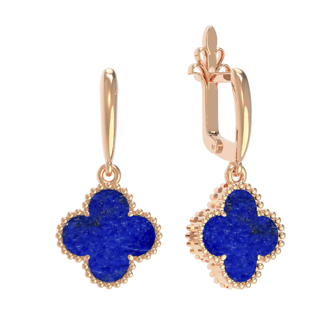 Изысканные серьги из красного золота 585 пробы — это воплощение элегантности и утонченного вкуса. Изделие, представленное в рамках коллекции De Luxe — Клевер, выполнено в узнаваемом дизайне клевер, который давно стал символом удачи и благополучия. Глубокий синий цвет лазурита создает эффектный контраст с теплым оттенком драгоценного металла, привлекая внимание к лицу и подчеркивая естественную красоту своей обладательницы.