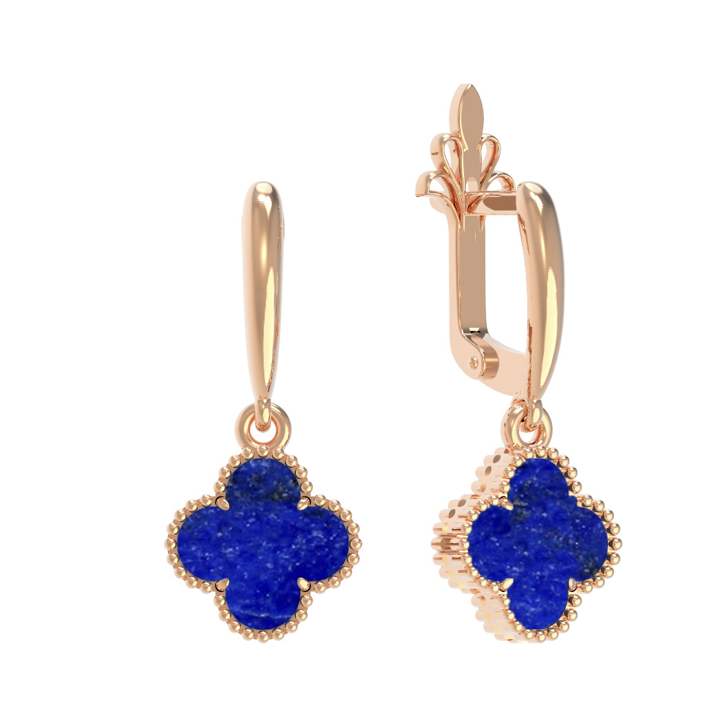Элегантные серьги из красного золота 585 пробы из коллекции De Luxe — Клевер станут воплощением утонченного вкуса и стиля. Дизайн изделия вдохновлен природной формой клевера, что придает украшению особую символичность и изящество. Центральным элементом композиции является яркий лазурит насыщенного синего цвета, который эффектно контрастирует с теплым блеском благородного металла.