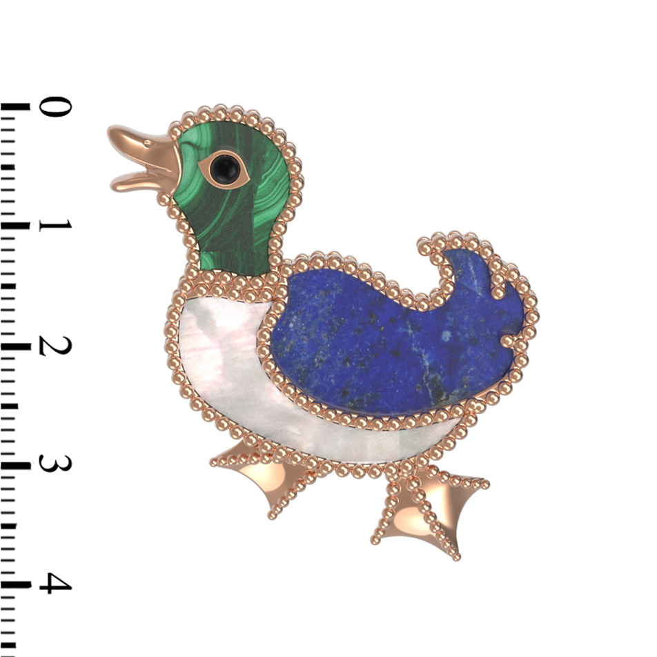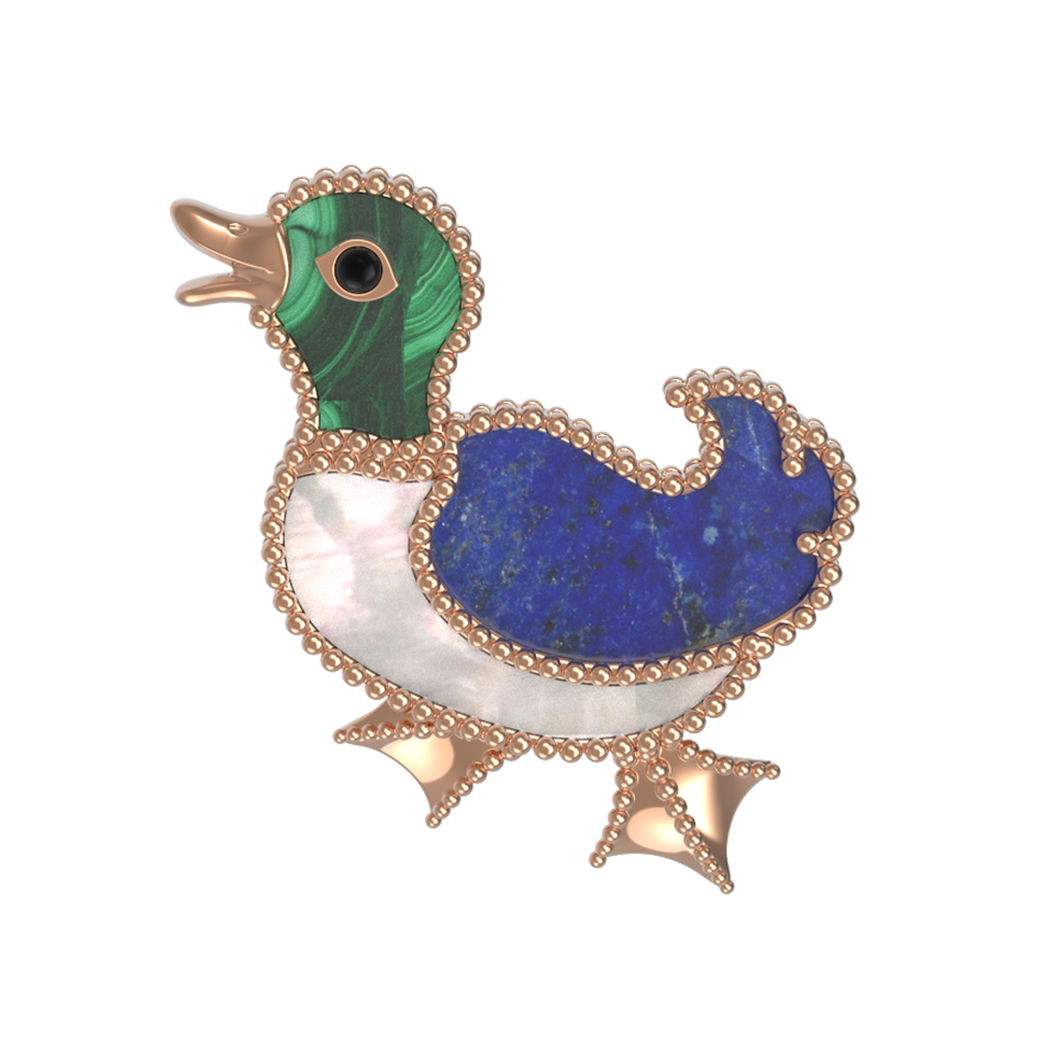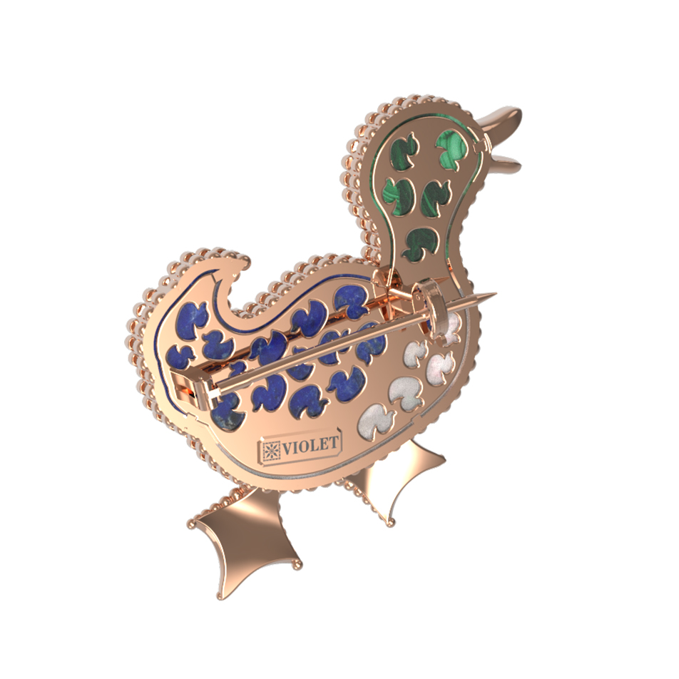 Эта авторская брошь из красного золота 585 пробы станет ярким акцентом вашего образа. Дизайн украшения, вдохновленный грациозными птицами, делает его не просто ювелирным аксессуаром, а настоящим произведением искусства из коллекции De Luxe — В стране чудес. Художественное исполнение подчеркивается использованием качественных материалов: в изделии гармонично сочетаются вставки из натурального малахита зеленого цвета, насыщенного синего лазурита и нежного перламутра.