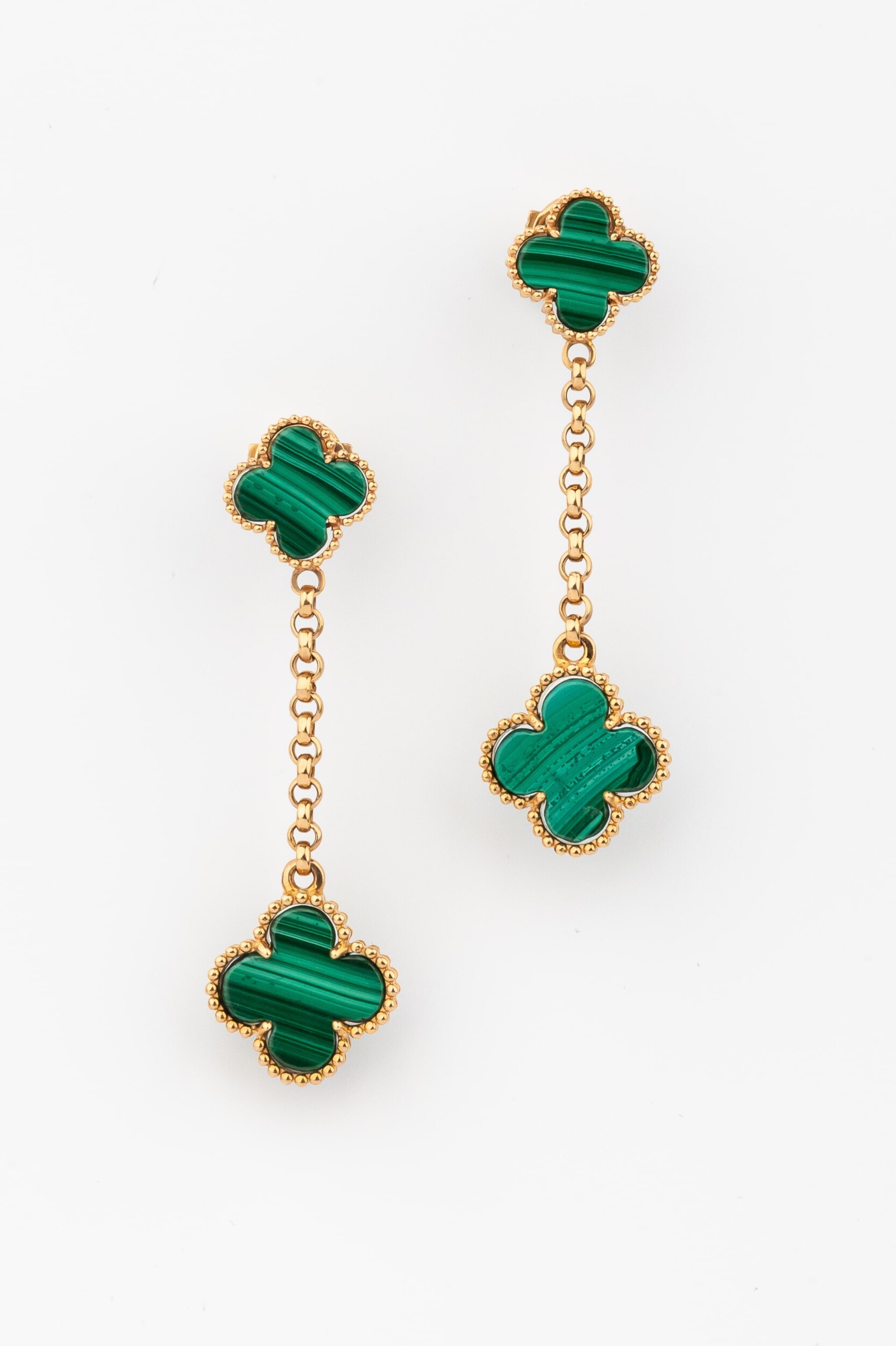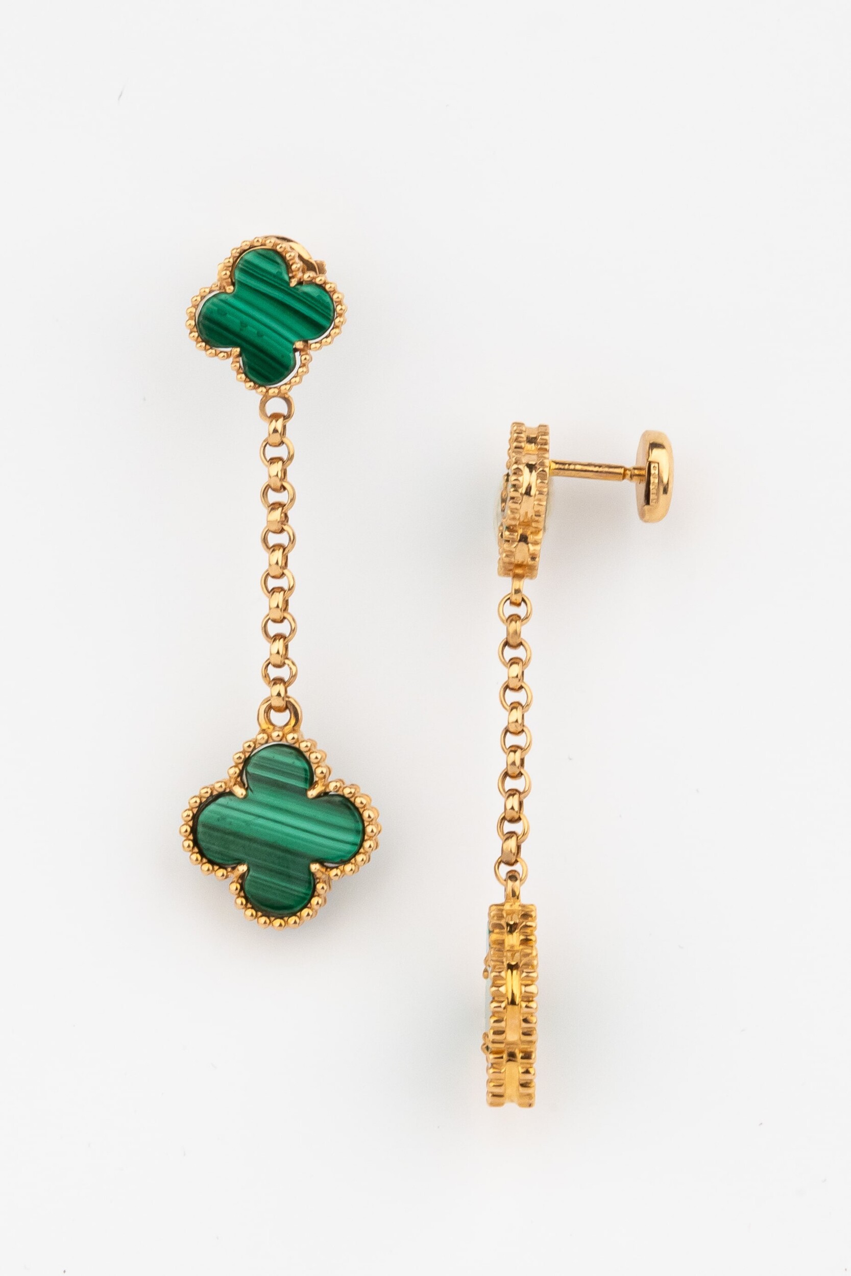 Данная модель украшена 4 вставками из натурального малахита, которые аккуратно обрамлены золотым контуром. Длинная подвесная часть делает серьги подвижными и эффектными, подчеркивая линию шеи и овал лица. Это универсальное украшение, созданное для тех, кто ценит лаконичность и высокое качество ювелирного исполнения.