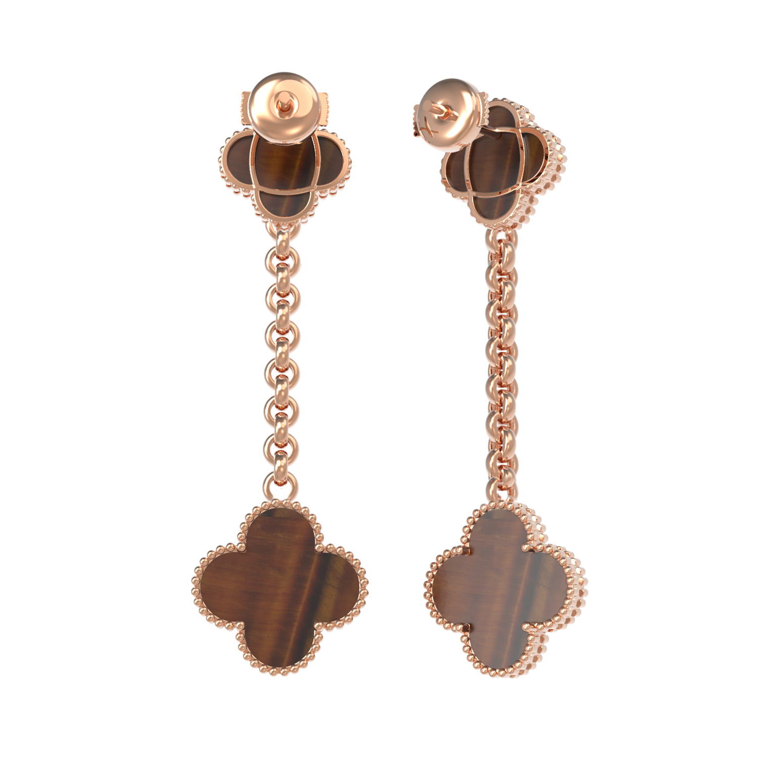 Эти изысканные серьги из коллекции De Luxe — Клевер станут безупречным завершением вашего образа, подчеркивая статус и утонченный вкус. Украшение выполнено из благородного красного золота 585 пробы, которое придает изделию теплое и насыщенное сияние. В центре композиции — 4 вставки из натурального тигрового глаза. Этот камень отличается глубоким оранжевым оттенком с характерным шелковистым отливом, который делает каждое изделие визуально уникальным и притягательным.
