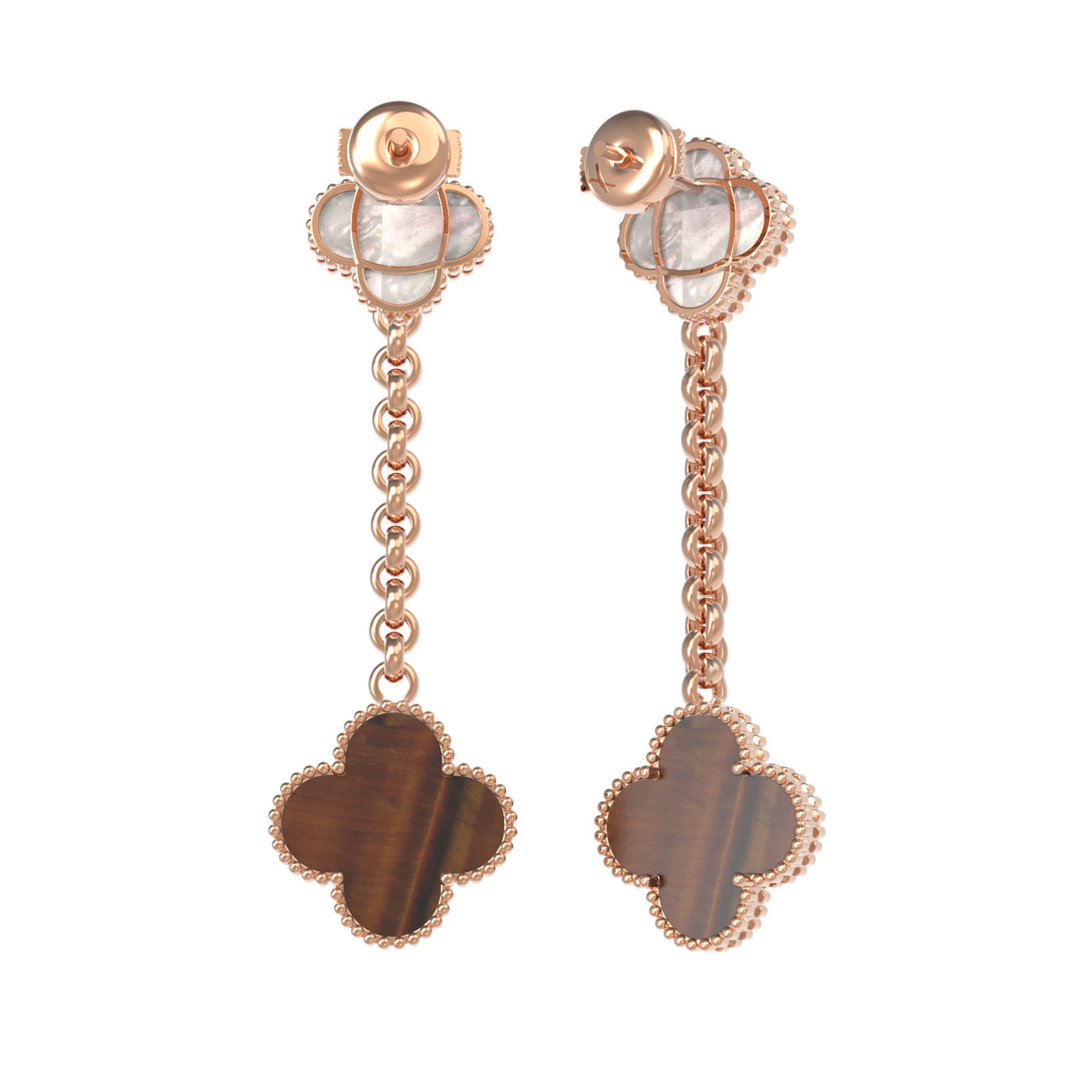 Элегантные серьги из красного золота 585 пробы станут изысканным дополнением к вашему образу. Украшение из коллекции De Luxe — Клевер выполнено в утонченном дизайне «Клевер», который придает изделию особую выразительность и стиль. Мастера использовали сочетание двух контрастных вставок: нежного перламутра и глубокого оранжевого тигрового глаза, что создает гармоничную игру цвета и света при каждом движении.