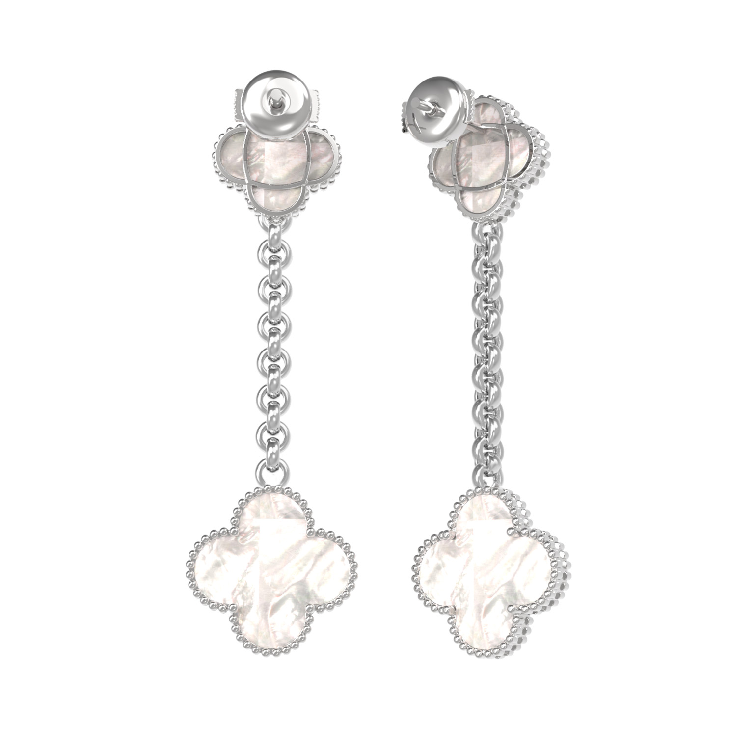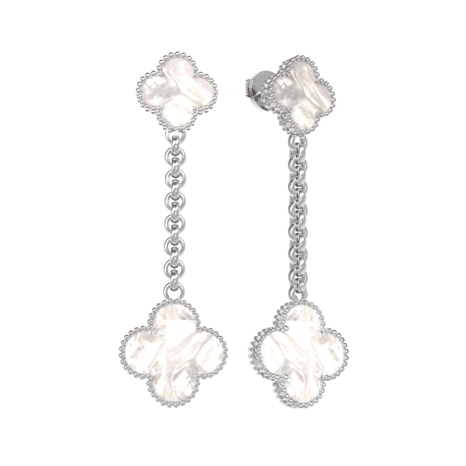 Серьги отличаются продуманной конструкцией: подвесная часть с цепочкой придает украшению динамику и легкость, позволяя перламутру красиво переливаться при каждом движении. Цвет вставок гармонично сочетается с холодным оттенком золота, создавая эффектный и притягательный образ. Это ювелирное украшение создано как для женщин, так и для мужчин, предпочитающих статусные аксессуары в минималистичном дизайне.