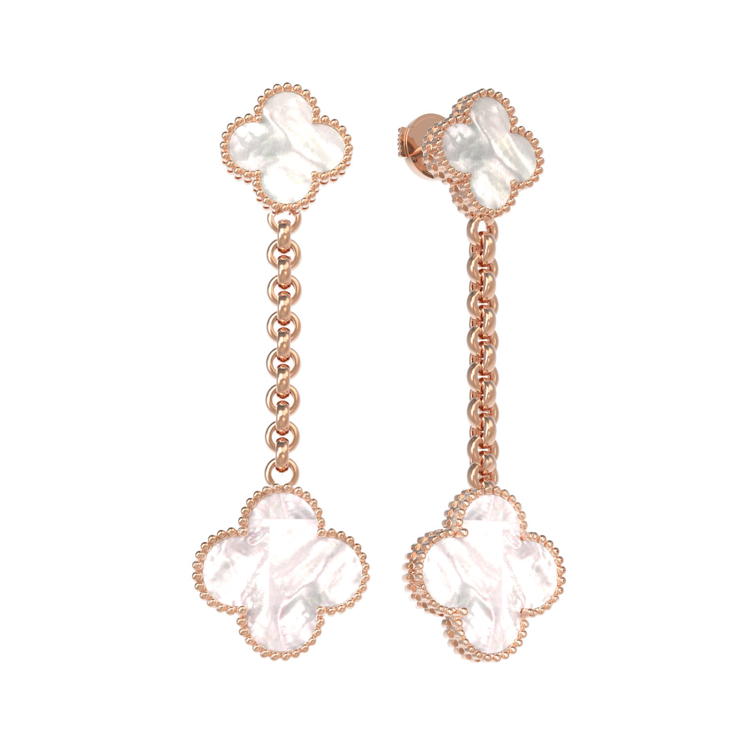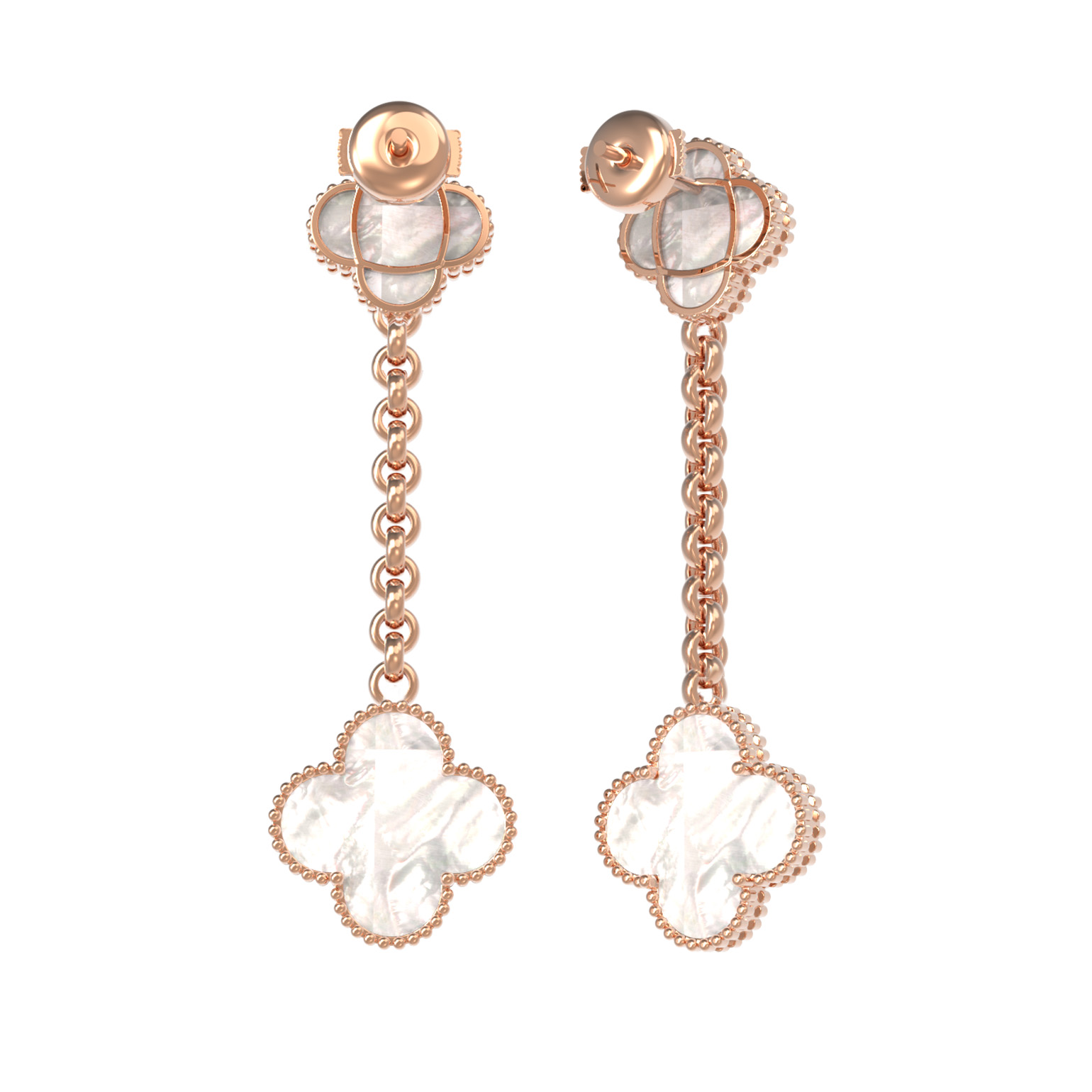Серьги из коллекции De Luxe — Клевер отличаются детальной проработкой каждого элемента. Вставка из перламутра с мягкими переливами идеально обрамлена золотым контуром, а цепочное соединение придает конструкции легкость и динамичность при каждом движении. Это украшение подойдет не только для женщин, ценящих классические формы, но и может быть использовано в рамках более смелых стилистических решений.