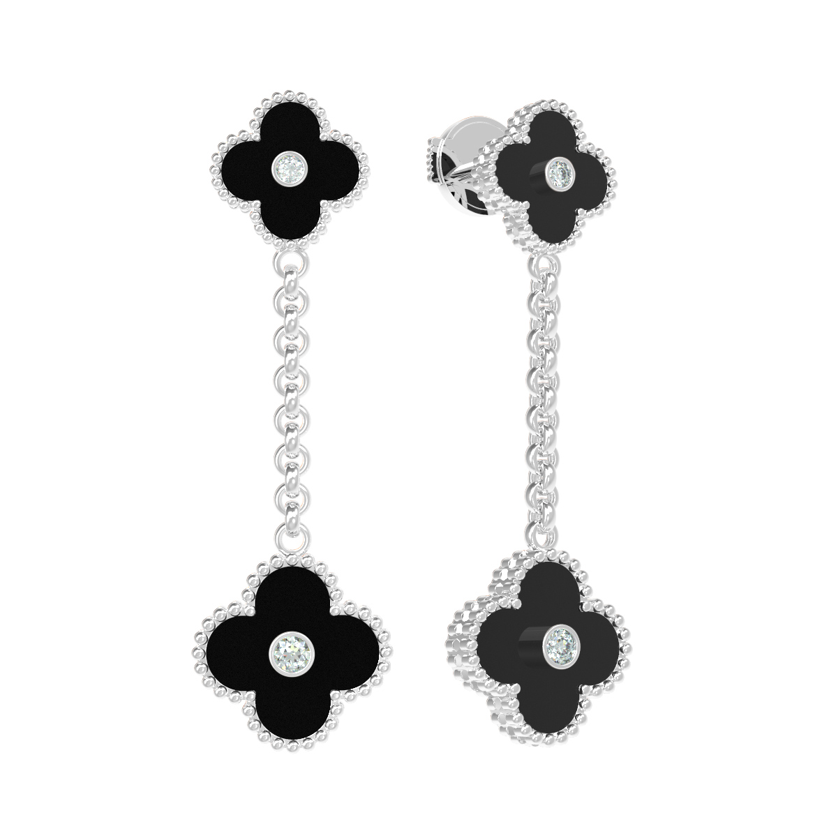 Серьги из белого золота 585 пробы из коллекции De Luxe — Клевер станут воплощением утонченного стиля и безупречного вкуса. Дизайн украшения, выполненный в форме символичного клевера, притягивает взгляд и подчеркивает индивидуальность образа. Контрастное сочетание холодного блеска белого металла с глубоким черным цветом оникса создает выразительную эстетику, подходящую как для женщин, так и для мужчин.