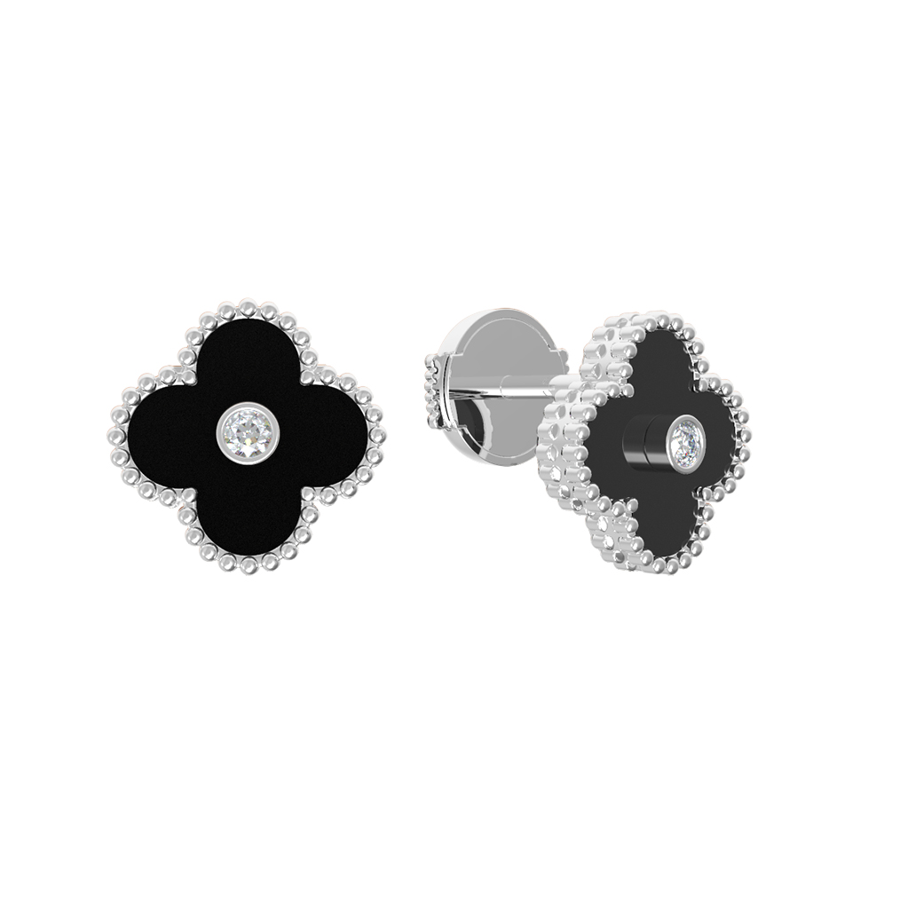 Изысканные серьги из белого золота 585 пробы — это сочетание лаконичного дизайна и благородных материалов. Модель входит в коллекцию De Luxe — Клевер, воплощая собой утонченную эстетику и внимание к деталям. Главным акцентом украшения стал узнаваемый дизайн клевер, придающий образу нотки аристократичности. Глубокий черный оникс контрастирует с холодным блеском металла, создавая гармоничный дуэт.