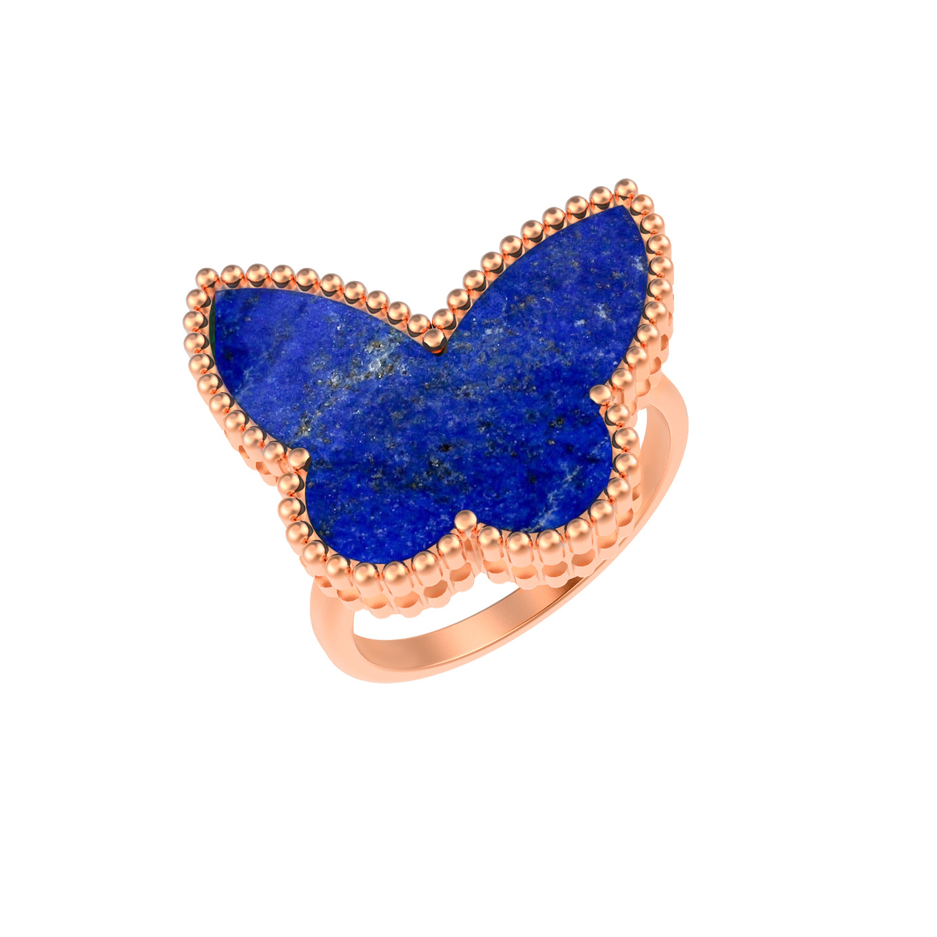 Особое внимание привлекает детальная проработка контуров: края крыльев бабочки оформлены аккуратным зернением, напоминающим россыпь драгоценных капель. Это кольцо одинаково хорошо подходит как для женщин, так и для мужчин, желающих добавить в свой стиль ноту индивидуальности. Однородная вставка глубокого синего цвета подчеркивает премиальный статус изделия.