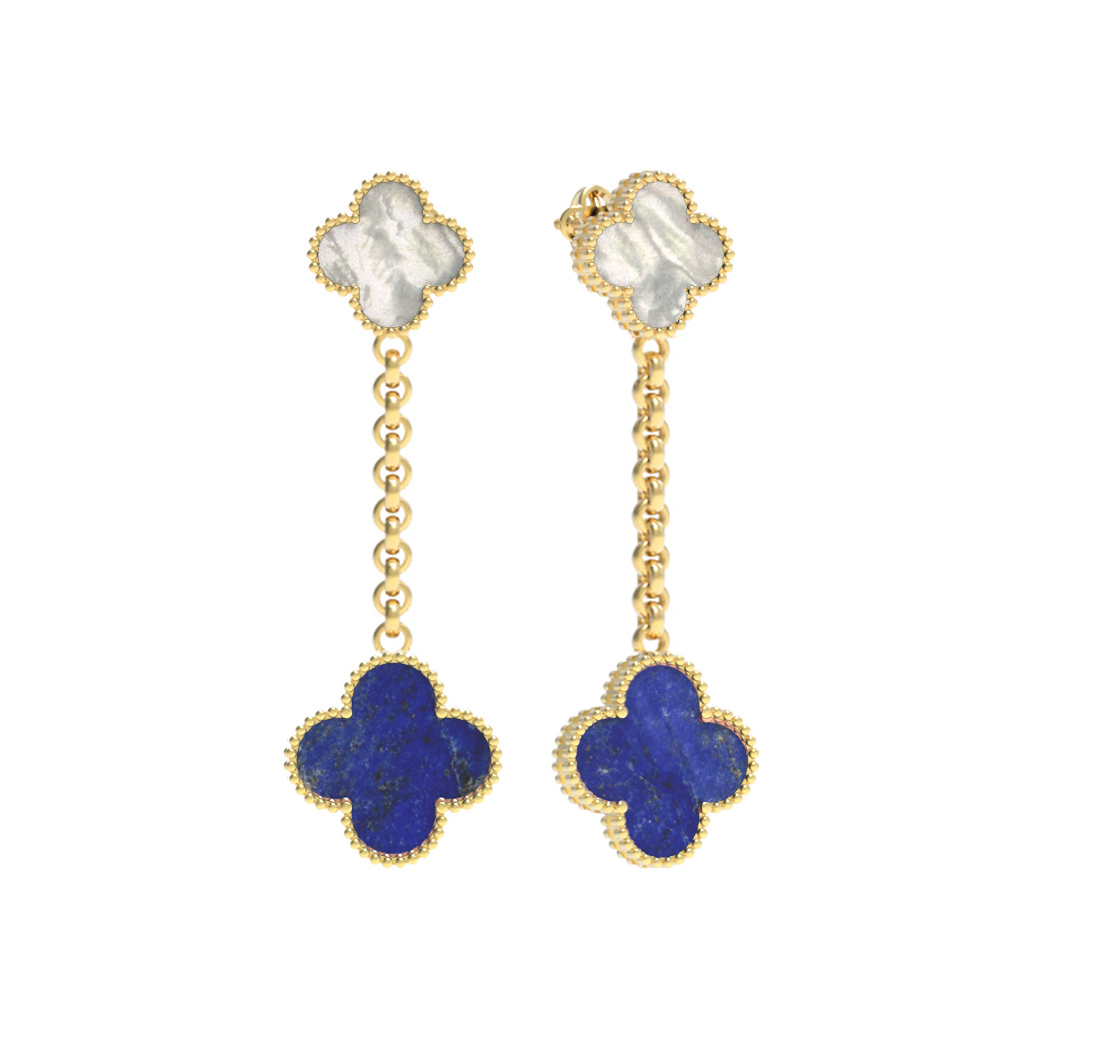 Серьги из лимонного золота c лазуритом и перламутром