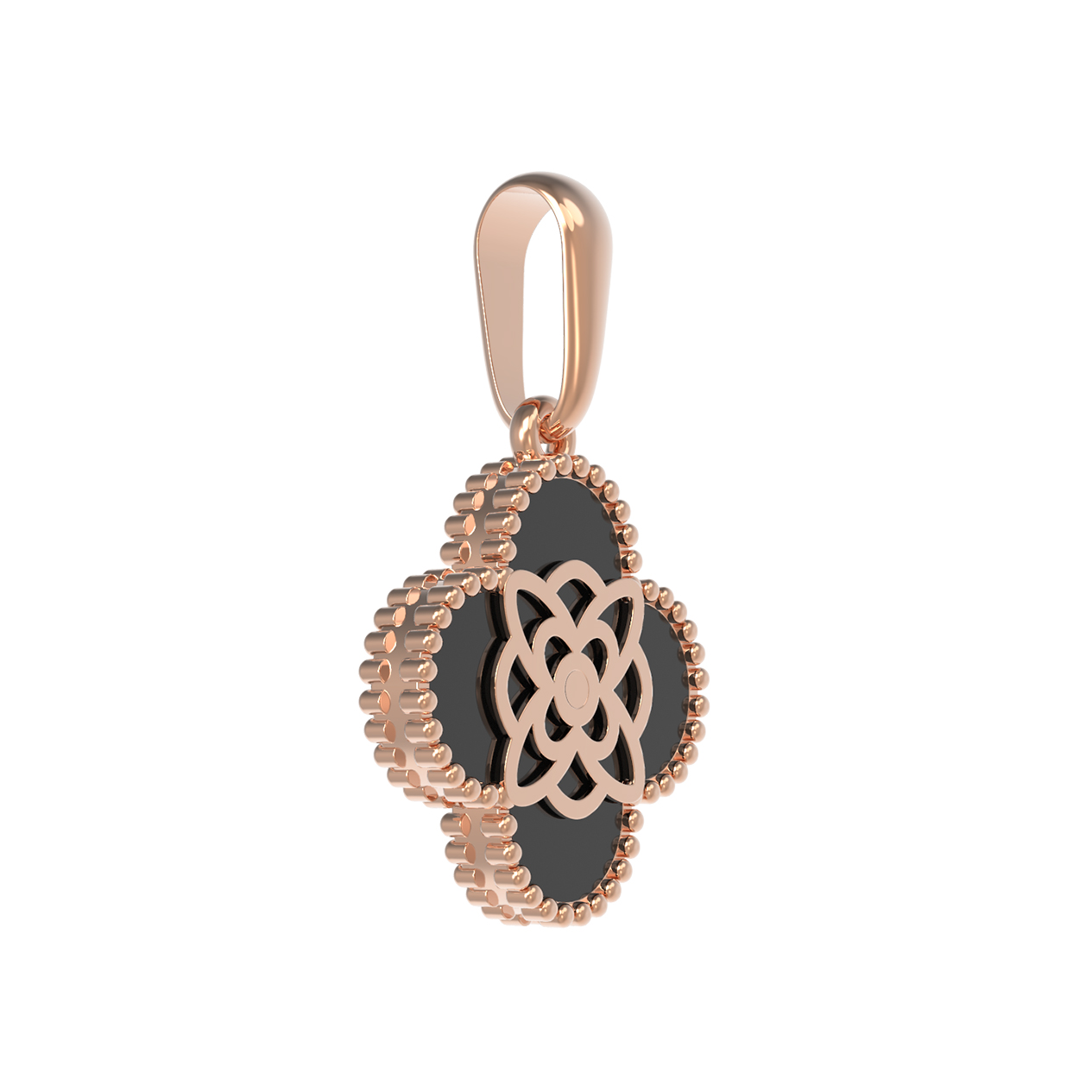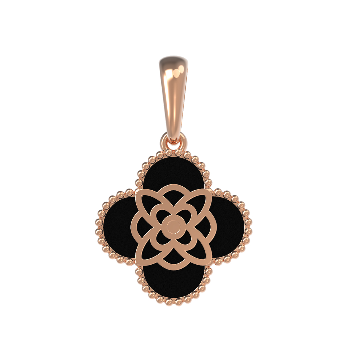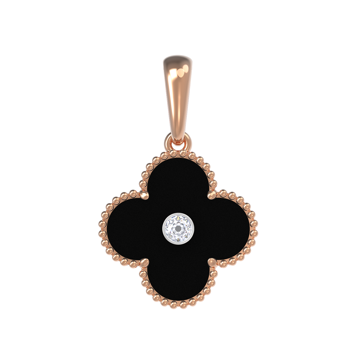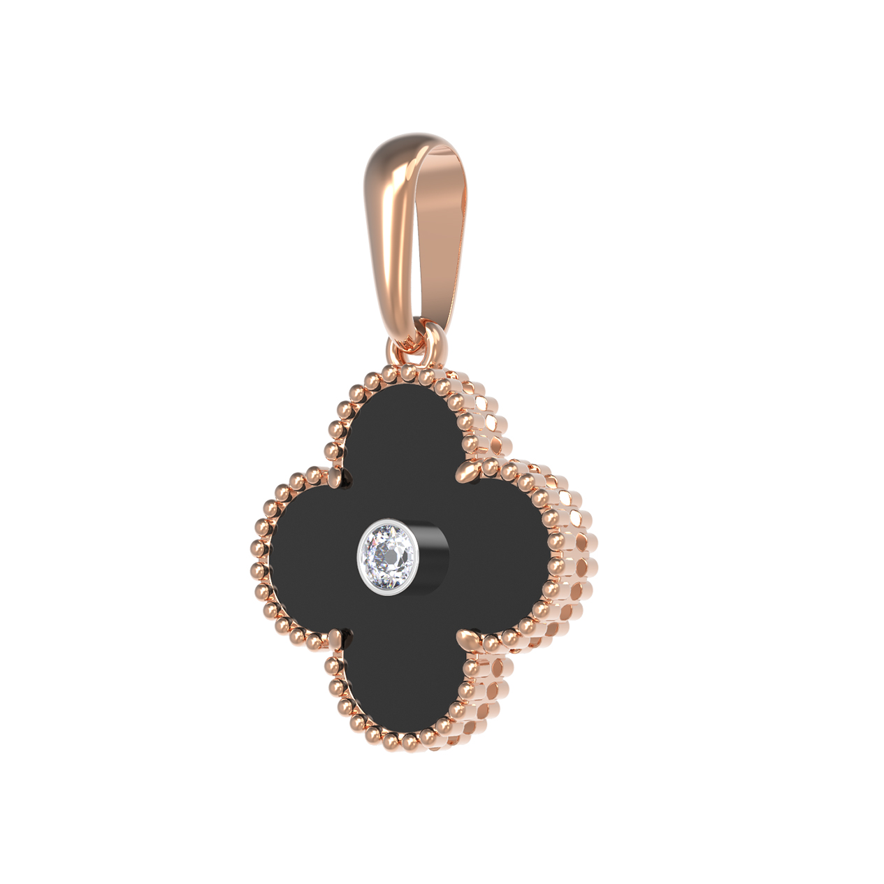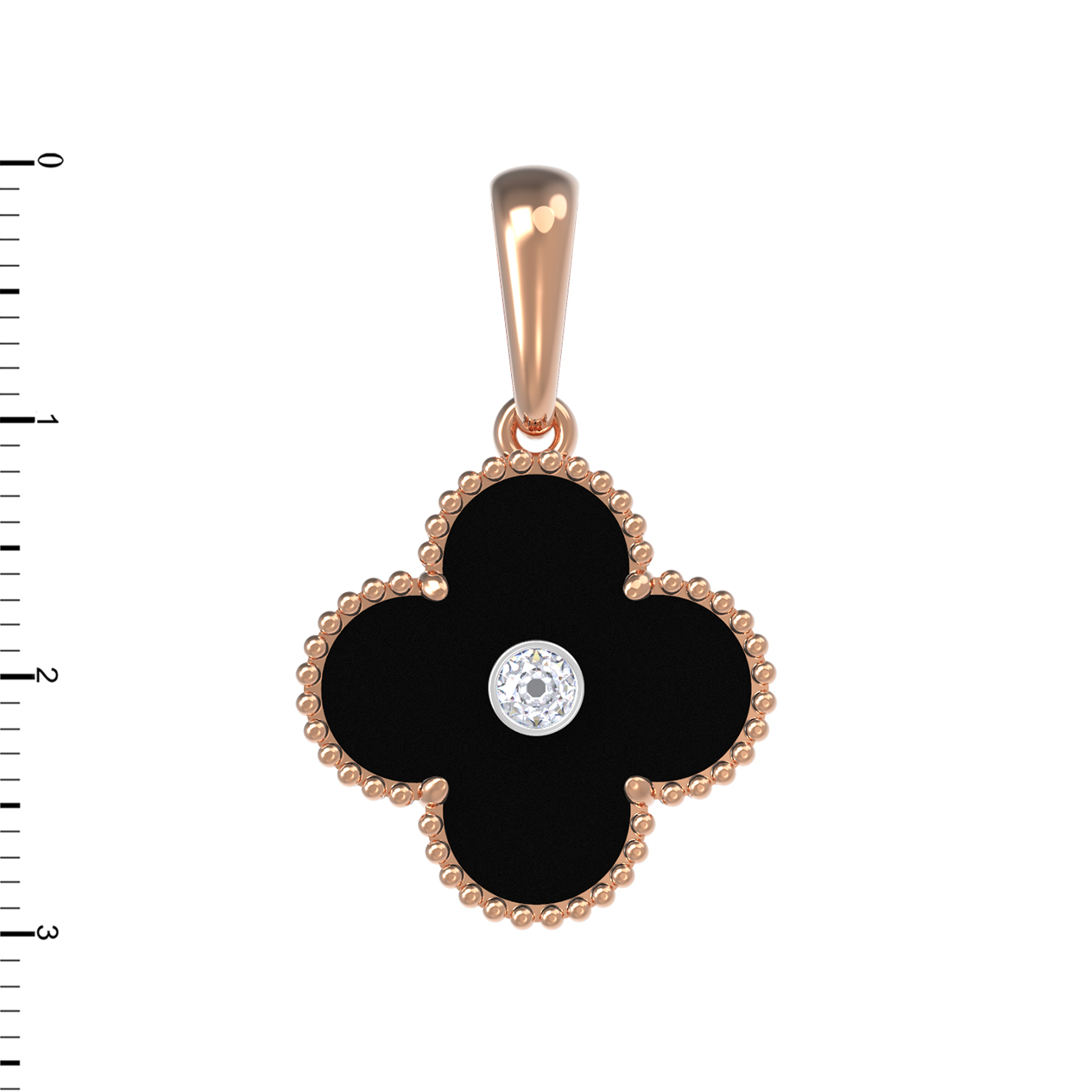 Элегантная подвеска из коллекции De Luxe — Клевер станет идеальным акцентом в вашем образе, подчеркивая статус и безупречный вкус владельца. Это ювелирное изделие выполнено из красного золота 585 пробы, чей теплый оттенок гармонично сочетается с выразительными вставками. Дизайн в форме клевера — изысканная классика, которая никогда не выходит из моды.